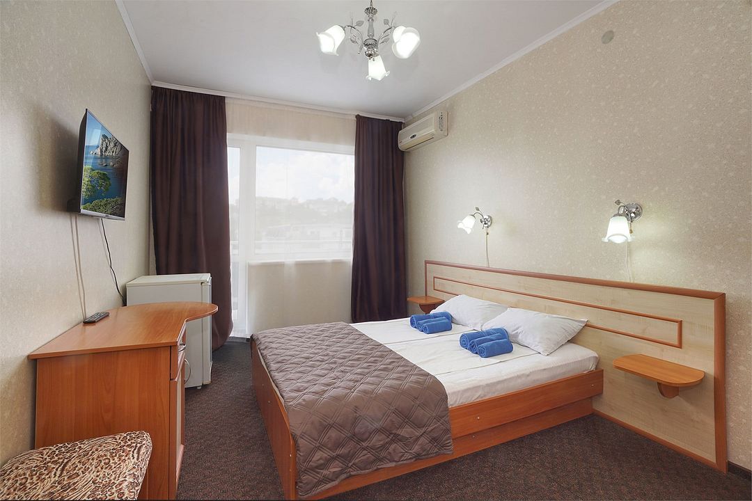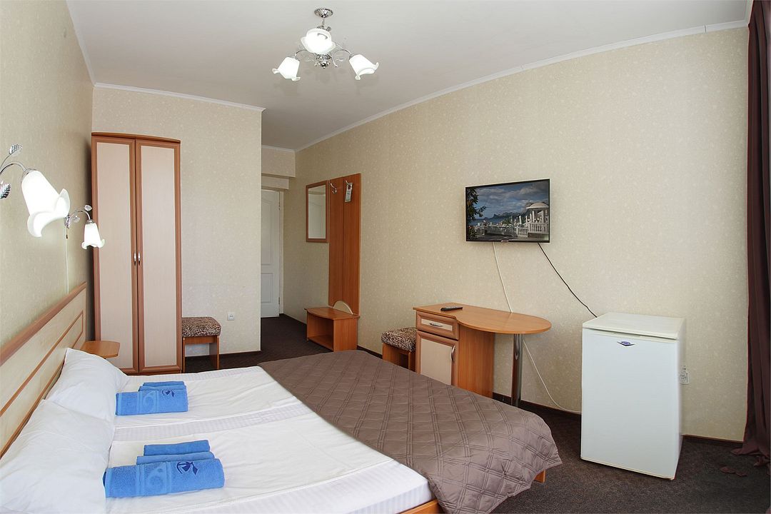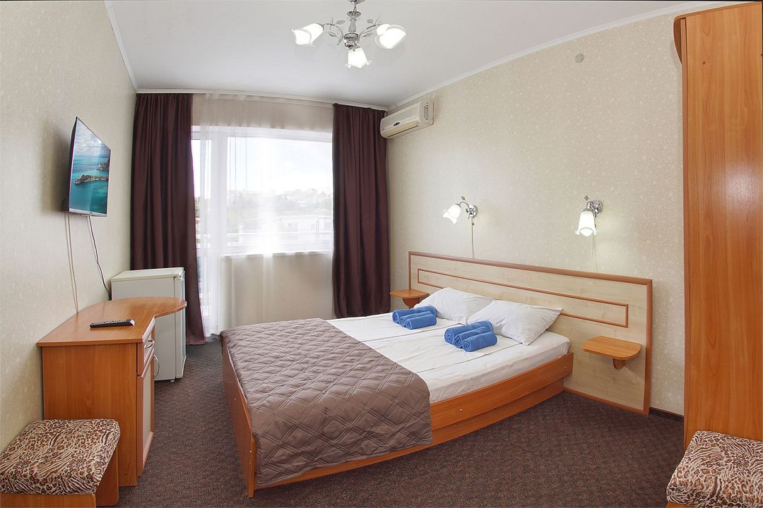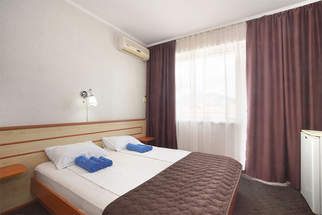 Однокомнатный номер общей площадью 18 кв.м., оформленный в традиционном стиле. В номере есть все необходимое для комфортного проживания: двуспальная кровать (или две односпальные) с удобным матрасом, балкон, шкаф для хранения одежды, прикроватные тумбы, холодильник, ЖК-телевизор, сплит-система, собственная ванная комната с душевой кабиной и туалетными принадлежностями, набор для приготовления чая/кофе. Вид из номера на город и горы. Номера расположены на 3, 4 и 5 этажах.Услуги и удобства