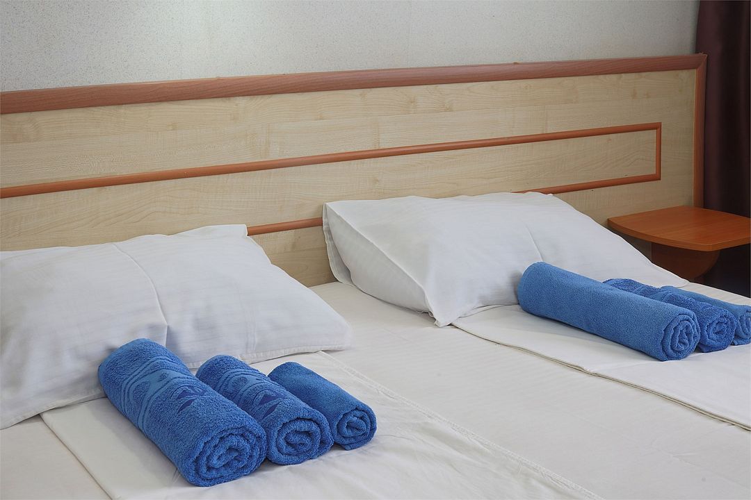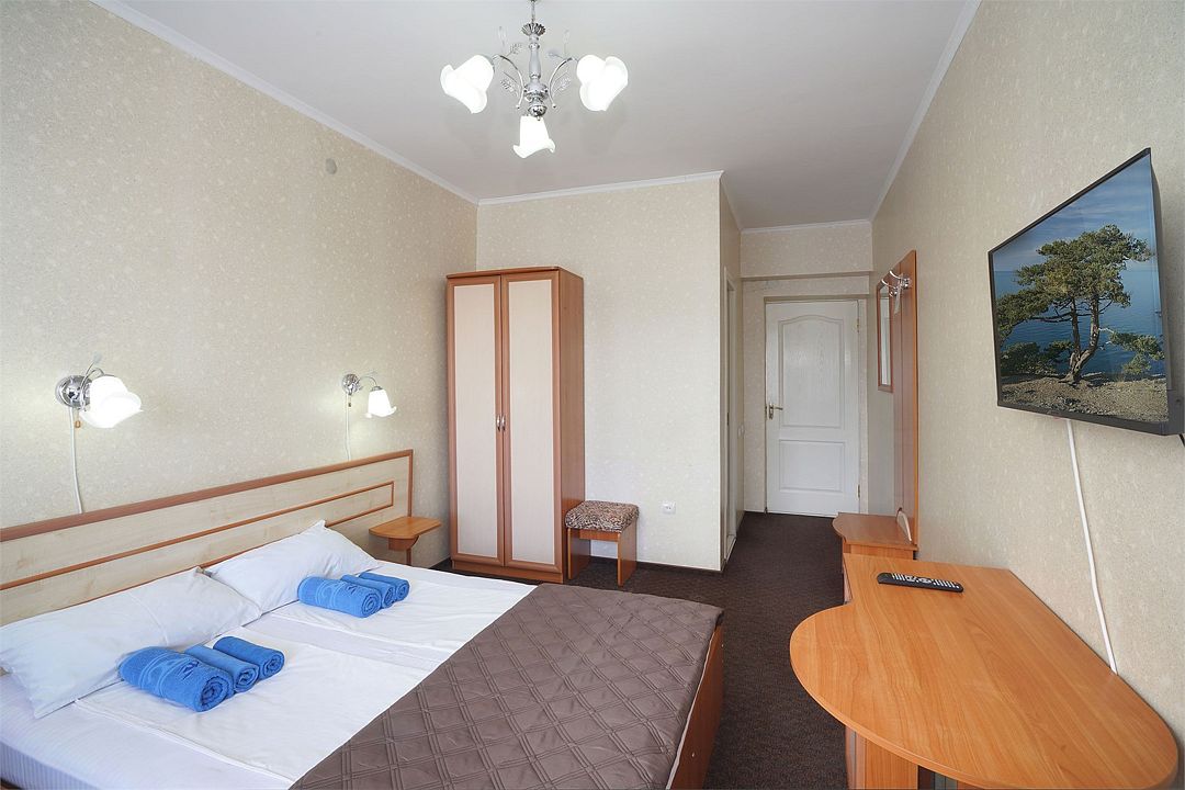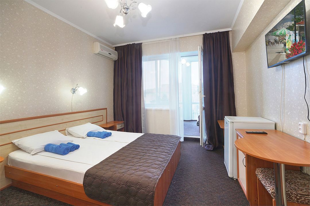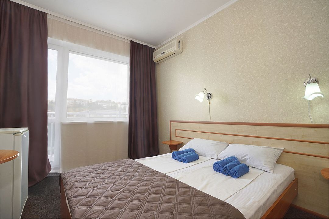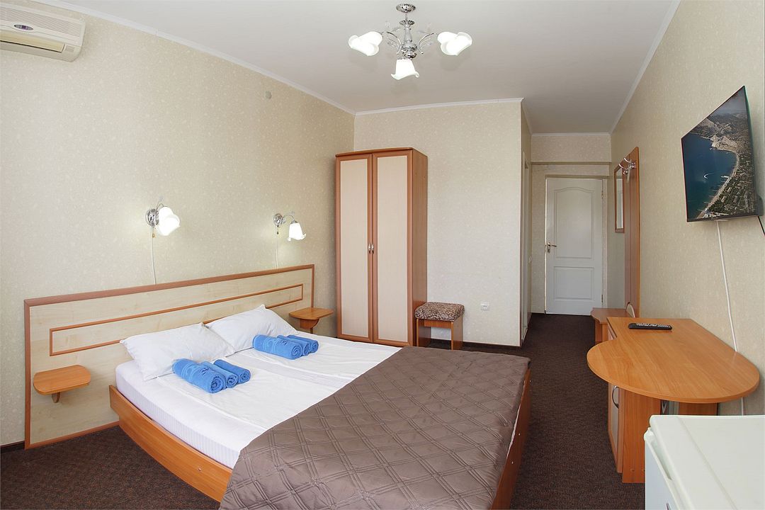 Однокомнатный номер общей площадью 18 кв.м., оформленный в традиционном стиле. В номере есть все необходимое для комфортного проживания: двуспальная кровать (или две односпальные) с удобным матрасом, балкон, шкаф для хранения одежды, прикроватные тумбы, холодильник, ЖК-телевизор, сплит-система, собственная ванная комната с душевой кабиной и туалетными принадлежностями, набор для приготовления чая/кофе. Вид из номера на город и горы. Номера расположены на 3, 4 и 5 этажах.Услуги и удобства
