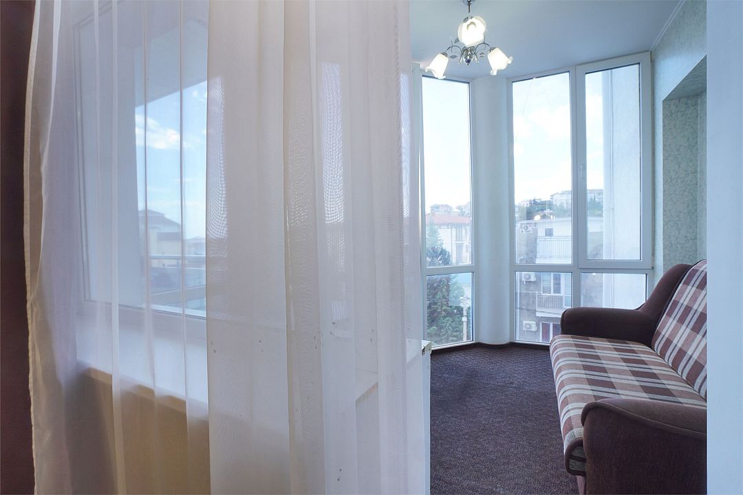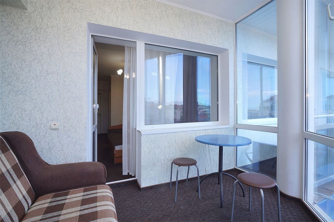 Двухкомнатный номер общей площадью 25 кв.м., оформленный в традиционном стиле. В основной комнате двуспальная кровать и односпальная кровать. На лоджии с панорамными окнами расположен раскладной двуспальный диван. В номере есть все необходимое для комфортного проживания: тумба для размещения багажа, шкаф для хранения одежды, прикроватные тумбы, холодильник, ЖК-телевизор, письменный стол, сплит-система, собственная ванная комната с душевой кабиной и туалетными принадлежностями, набор для приготовления чая/кофе. Вид из номера на город и горы. Номера расположены на 3, 4 и 5 этажах.Услуги и удобства