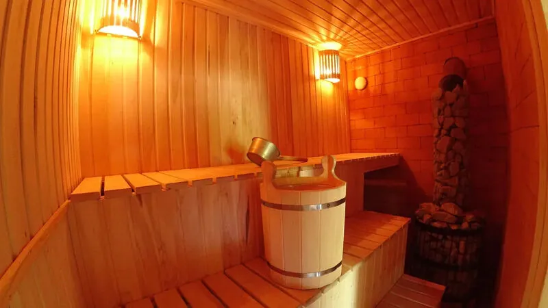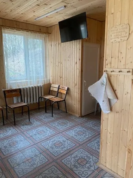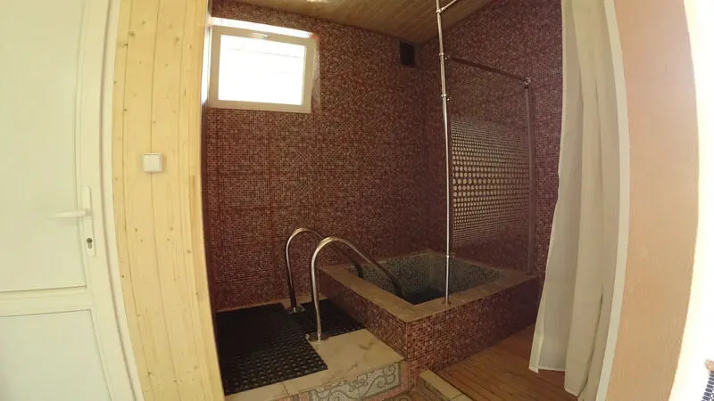 Баня «У Романыча», площадью 42 кв.м, вмещает 4-6 человек. Топится дровами. Домик состоит из 5 комнат: предбанник, парилка, бассейн, санузел, душевая. В комнате отдыха есть все удобства и телевизор.
