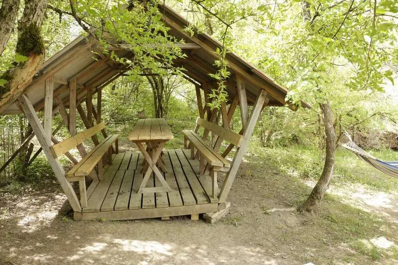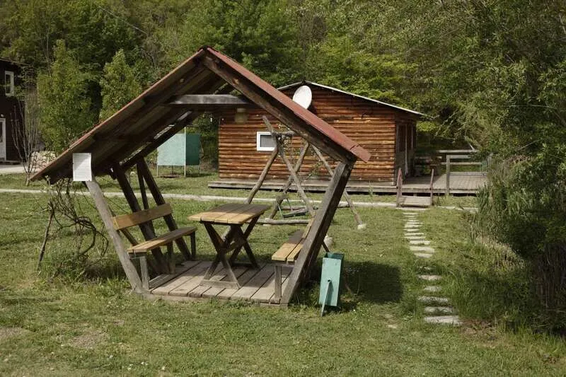 На территории комплекса находятся несколько оборудованных беседок из сруба (малая беседка — до 6 человек; средняя беседка — 10-15 человек). Они расположены в 25 метрах друг от друга, чтобы компании могли отдохнуть в своем окружении, подальше от других глаз. Все сооружения находятся рядом с озером, где водится рыба. По желанию отдыхающие могут порыбачить и приготовить свой трофей или просто организовать пикник.