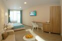 Насладитесь удобством улучшенного номера отеля с видом на город и личной террасой. Номера отеля предлагают двухместное размещение. Пастельные тона делают его более просторными, современная мебель, приятный текстиль, косметика для ванн и техника – вы найдете здесь комфорт, полноценный отдых и место для плодотворной работы. К вашим услугам: +/- 19 кв. метров номера, бесплатный Интернет, станция для приготовления чая и кофе, сейф, фен.