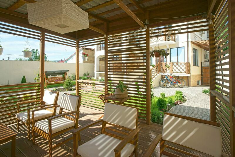 В тихом и уютном дворе можно расслабиться, наслаждаясь зеленым оазисом. Гости дома смогут также отдохнуть на местном пляже, находящемся в шаговой доступности от Черного моря, в 7-10 минутах пешком. Здесь можно позволить себе полежать на мелкой гальке и насладиться солнцем Крыма.