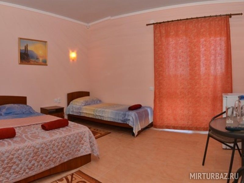 Всего в 200 метрах от моря расположен гостевой дом "Pallada". Это современный особняк в два этажа, приятного внешнего вида. Он начал свою работу недавно, в 2015 году, но уже занял свою нишу в туристической сфере курорта. Номерной фонд гостевого дома состоит из 12 комфортабельных 3-, 4-местных номеров со всеми удобствами. С террасы 2-го этажа открывается чудесный вид на море.