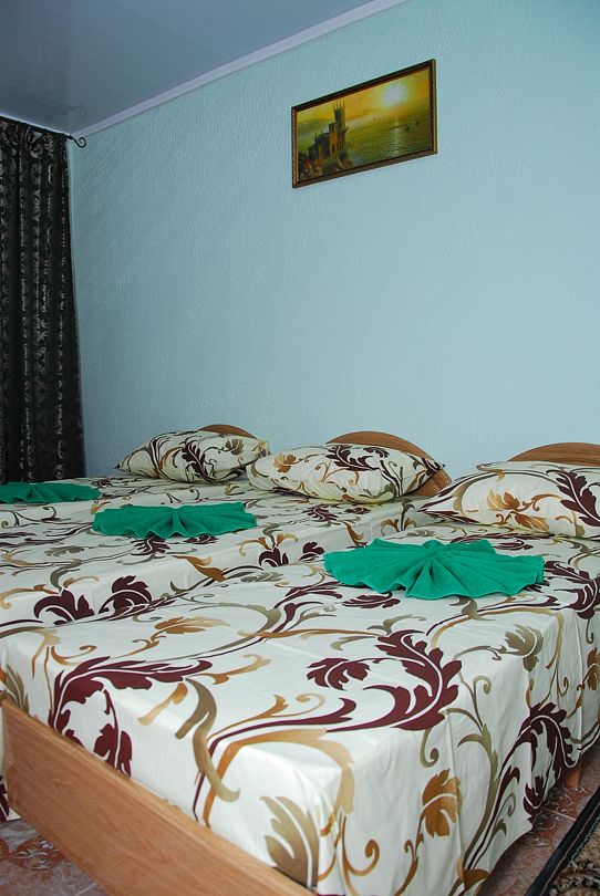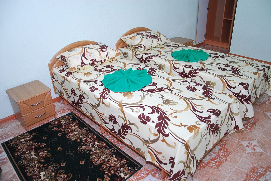Отель, включающий в себя два двухэтажных корпуса, разместился на благоустроенной территории, расположенной в частном секторе. В распоряжении отдыхающих двух- и трехместные номера с удобствами: есть собственный санузел с душем. Также во всех комнатах установлен кондиционер и имеется плазменный телевизор.