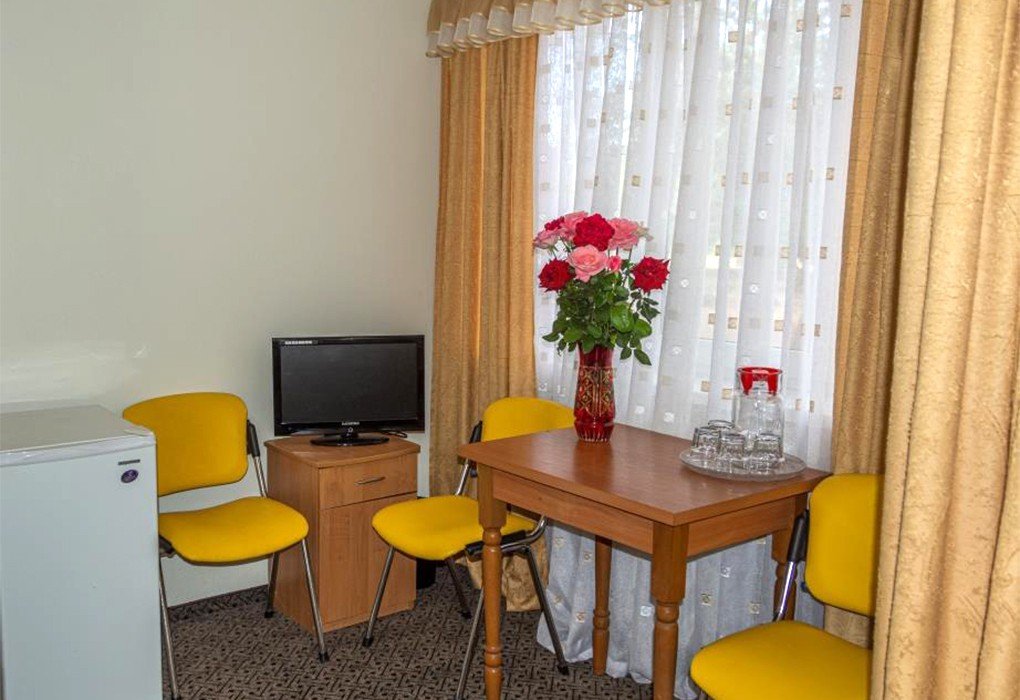 Столовая пансионата имеет два зала, оборудованных кондиционерами, плазменными экранами, удобной мебелью. Предусмотрено трехразовое комплексное меню (завтрак, обед, ужин) с элементами шведского стола.