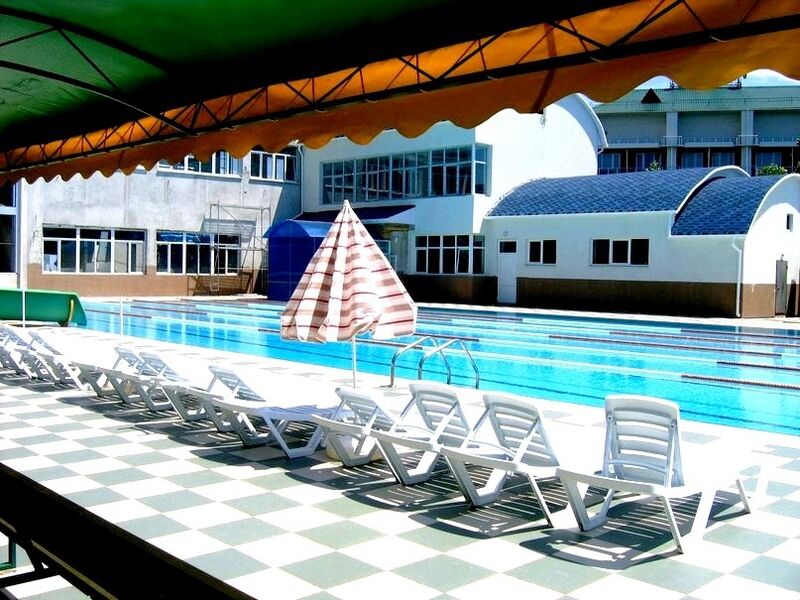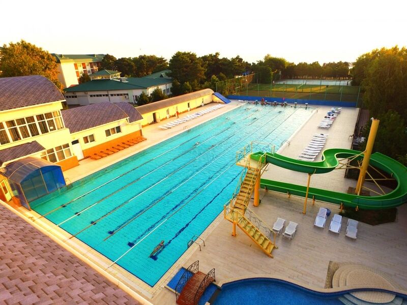 Гордость пансионата – большой плавательный бассейн олимпийского образца на 6 метровых дорожек. Бассейн прекрасно подходит для профессиональных тренировок спортсменов, занимающихся водными видами спорта (пловцов, синхронисток, вотерполистов и т.д.). Любители плавания также по достоинству оценят его.
