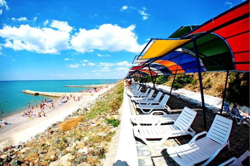 «Лучезарный» расположен на первой линии моря, имеет оборудованный галечный пляж, один из лучших на побережье Николаевки.