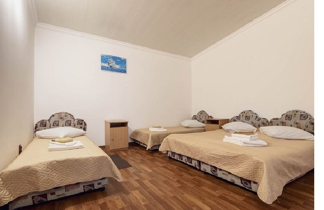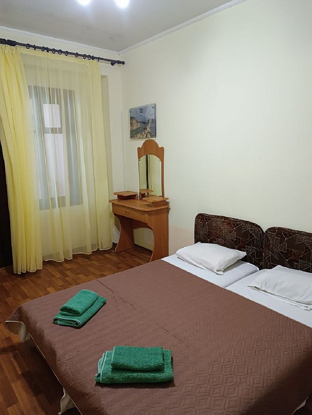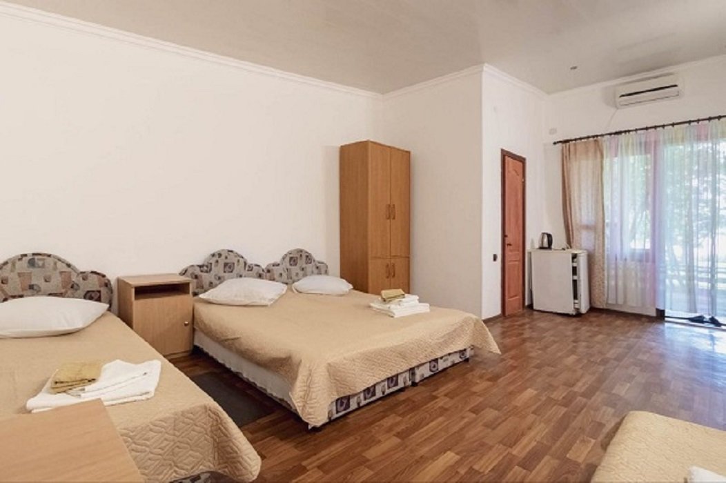 Номер двухкомнатный, вместимостью до 3 человек. Возможно доп. место. В номере санузел, кондиционер, телевизор, шкаф, туалетный столик, комод, кровати.