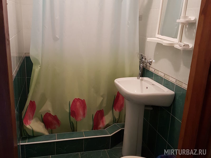 На первом этаже - 2 комнаты (2-х местные), кухня, душ, туалет, телевизоры.