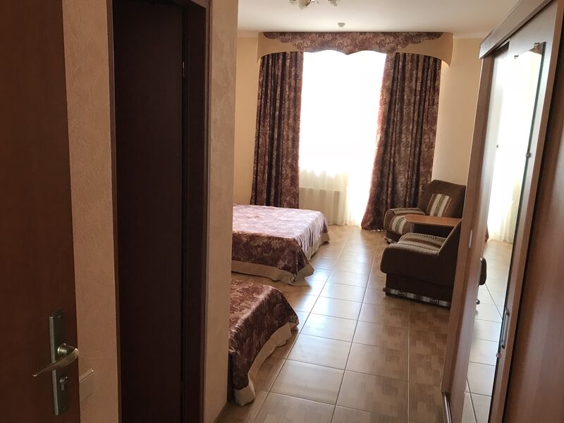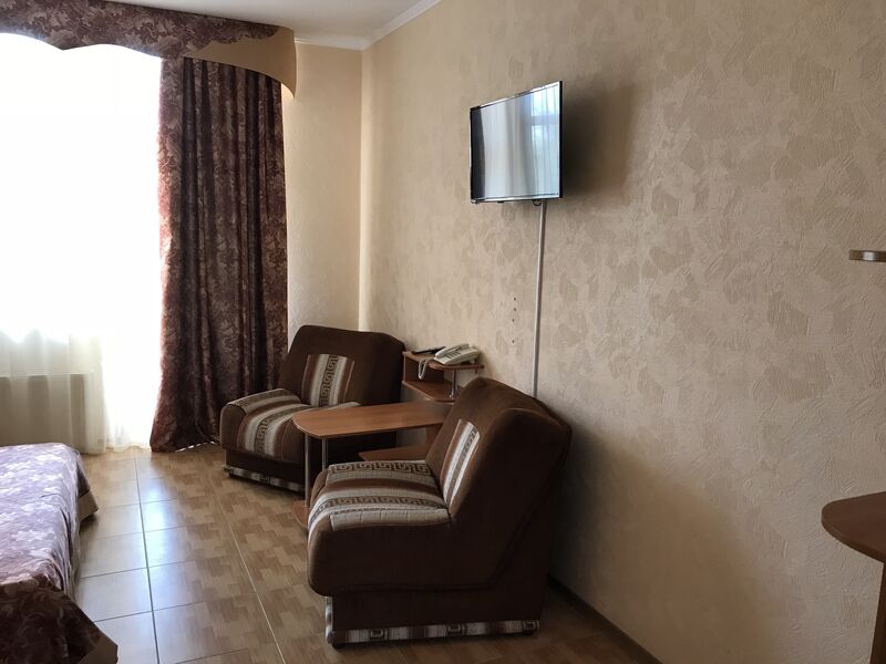 Семейный отдыхДостоинстваИз положительного отмечу, что расположение неплохое, берег близко. Номер большой, балкон хороший. Имеется столовая, в которой можно заказать завтрак, обед и ужин.