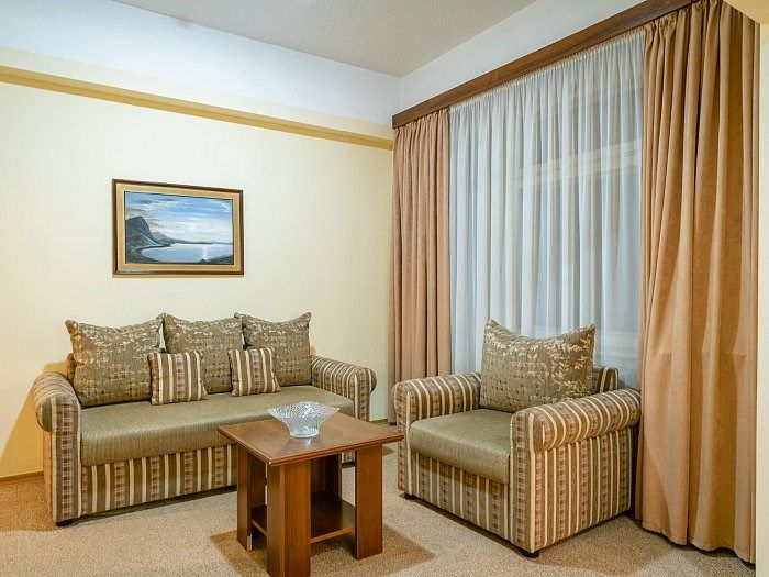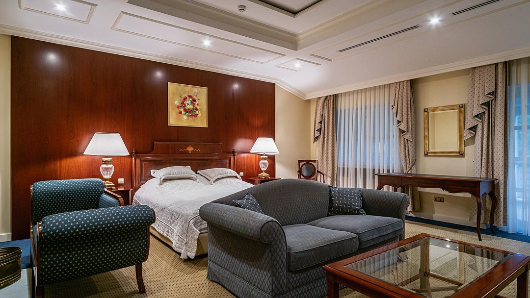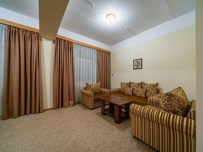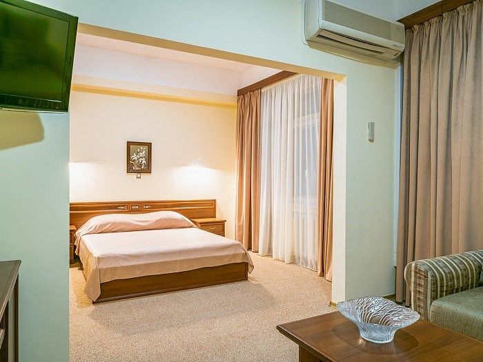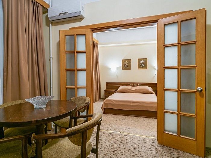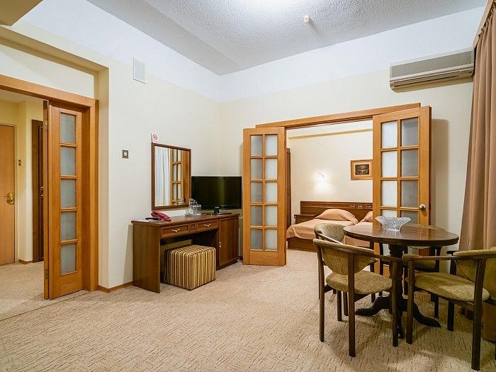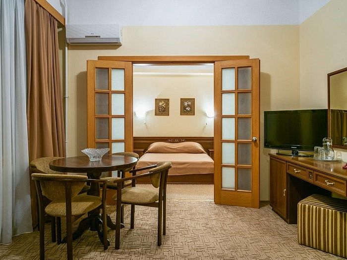 «Люкс» представляет собой двухкомнатный номер с балконом. Ванная комната оснащена джакузи. Великолепно подойдет для ценителей комфорта, современного дизайна и прекрасных видов. В номере есть все необходимое для комфортного проживания.Услуги и удобства