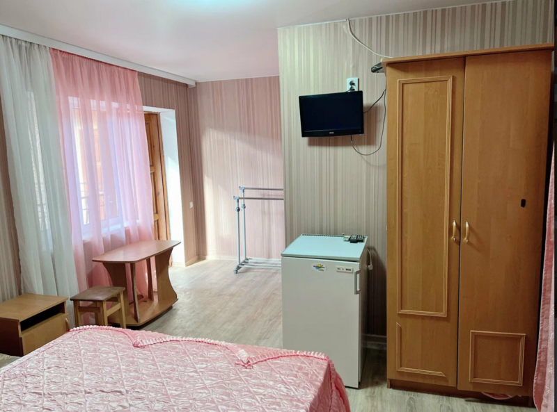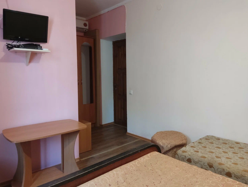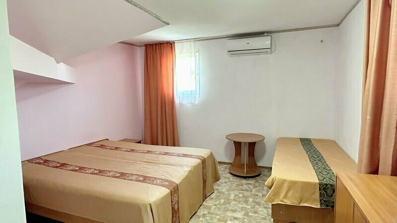 Однокомнатный номер с тремя раздельными кроватями. Идеально подходит для семейного проживания. Окно выходит на Генуэзскую крепость. Санузел расположен на том же этаже, душ — на первом. В номере: 3 односпальные кровати, тумбочка, вешалка, кондиционер, холодильник.