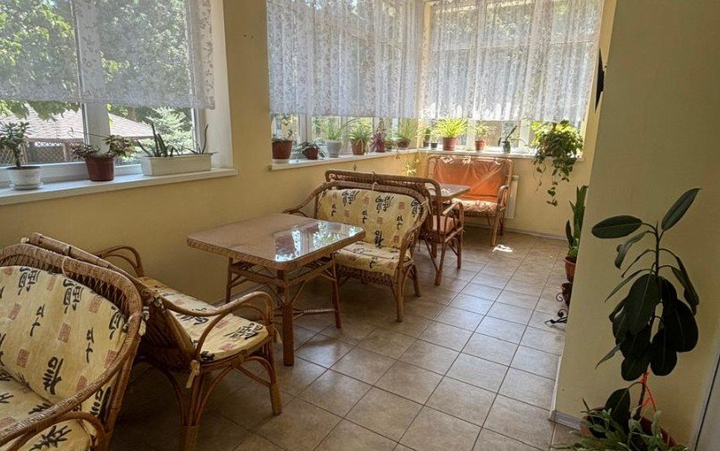 В гостевом доме есть общая кухня и столовая зона для приготовления пищи. На уютной территории есть беседка с мангалом для отдыха на свежем воздухе. К услугам гостей –– круглосуточная сауна с зоной отдыха, бильярд. Автомобиль можно оставить на собственной парковке. Оборудованный чистый песчаный пляж находится в 10 минутах ходьбы.