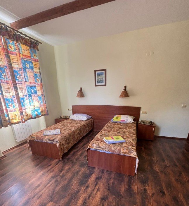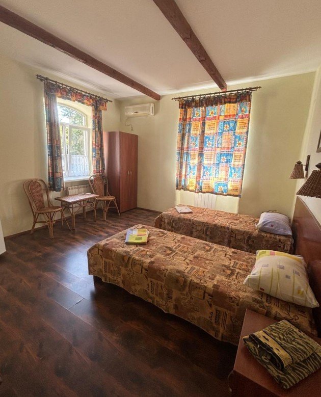 Для размещения предлагаются двухместные, трехместные и четырехместные номера со всем необходимым для комфортного отдыха –– удобными кроватями, мебелью, душевыми, телевизорами и холодильниками.