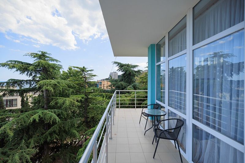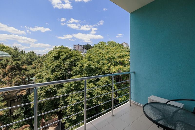 Просторный однокомнатный номер улучшенной планировки с большим балконом и видом на море. Площадь номера — 22 кв.м. В номере установлена система кондиционирования, есть сейф, шкаф/гардероб и балкон.
