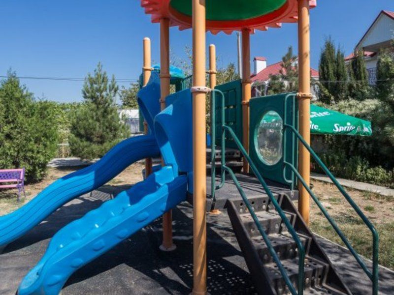 Семейный отдыхДостоинстваДля отдыха с детьми место подходит идеально. На территории отличный бассейн, большая детская площадка с горками. Есть трансфер до моря.