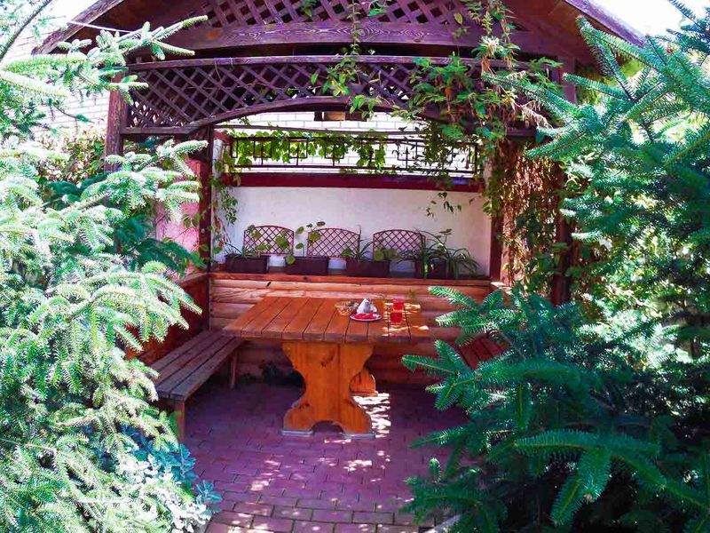 Для комфортного отдыха на свежем воздухе обустроено несколько небольших, но очень удобных летних беседок. Такой формат идеально подходит для общения в тесном дружеском кругу.
