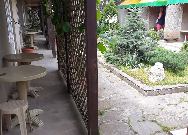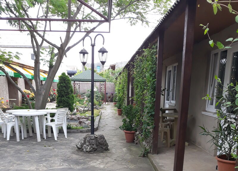 Гостевой дом занимает закрытую благоустроенную территорию в 200 метрах от пляжа. В распоряжении гостей 14 однокомнатных номеров с удобствами. В каждом есть санузел, душ, вентилятор, мини-холодильник.