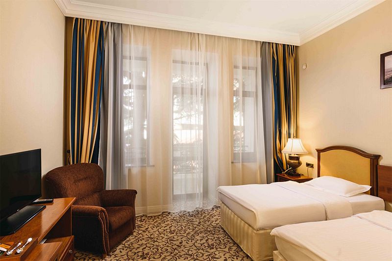 Гостиничные номера категорий «люкс» и «полулюкс», «президентский люкс», «стандартный» и «улучшенный» оборудованы системой общего кондиционирования. В каждом номере есть телефон, ТВ и WI-FI, чайник и чайная посуда.