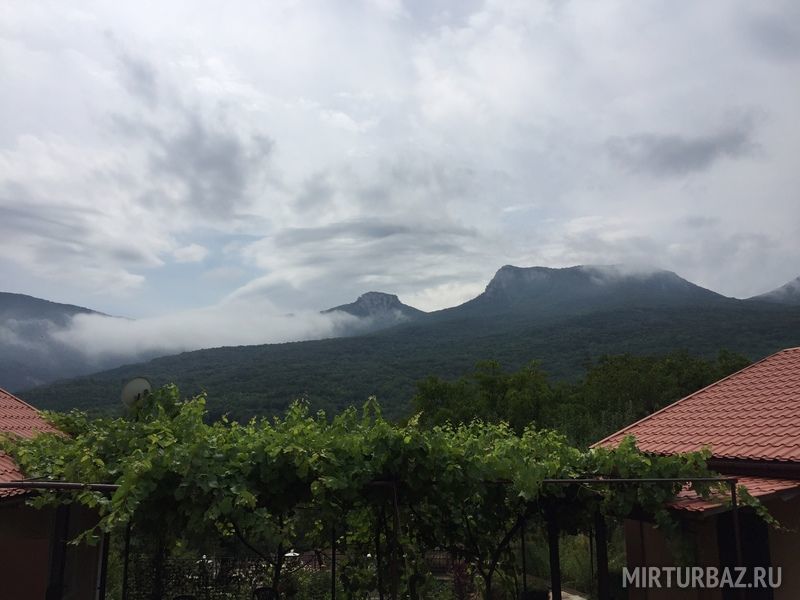 С территории открывается панорамный вид на вершины горного массива Бойка.