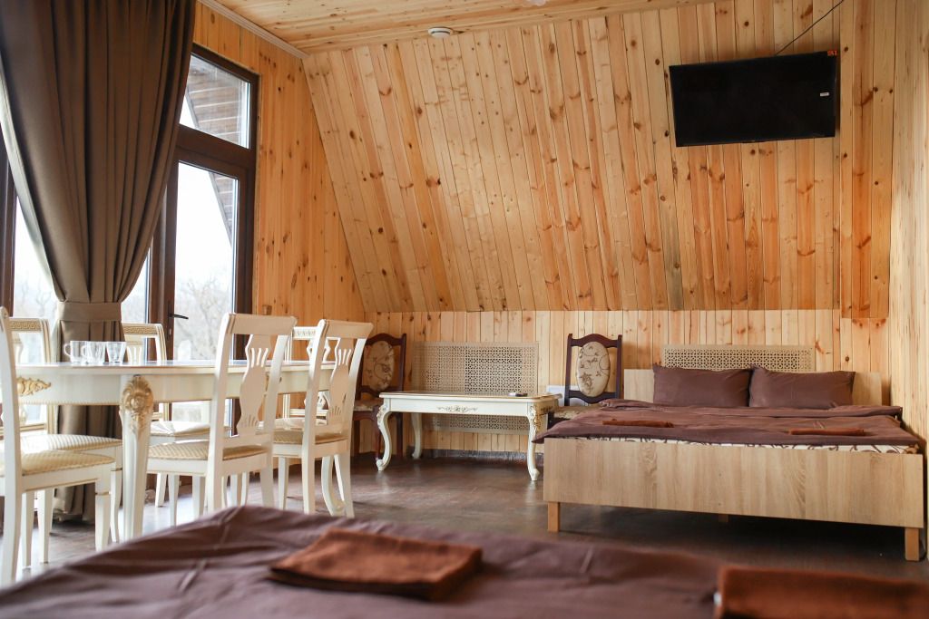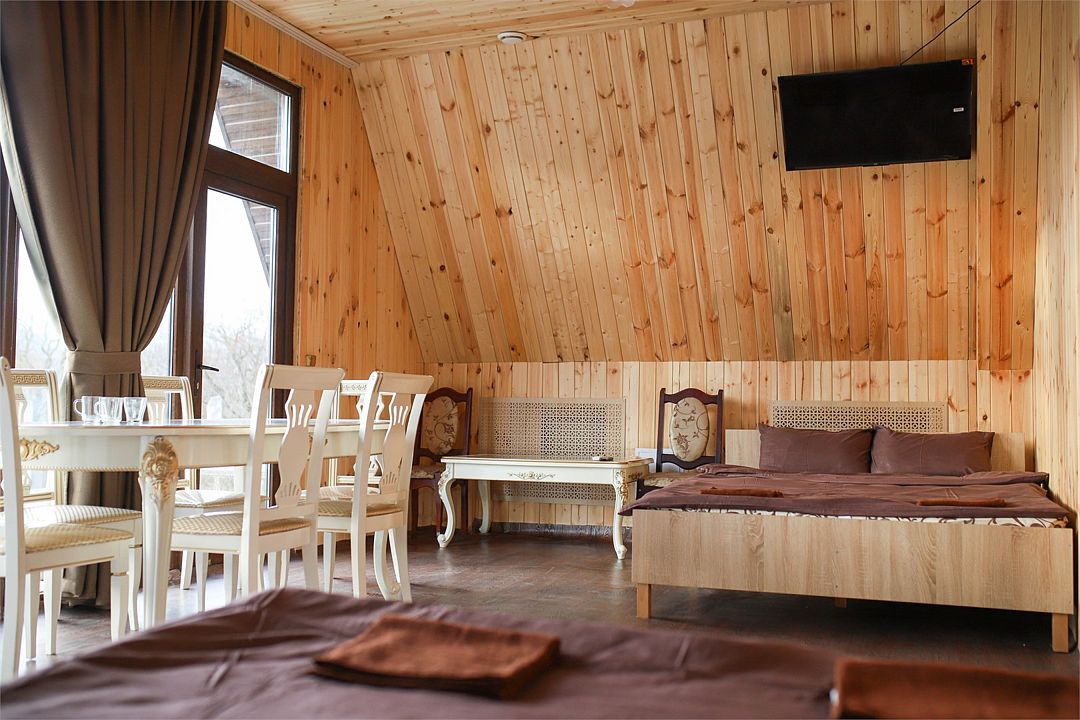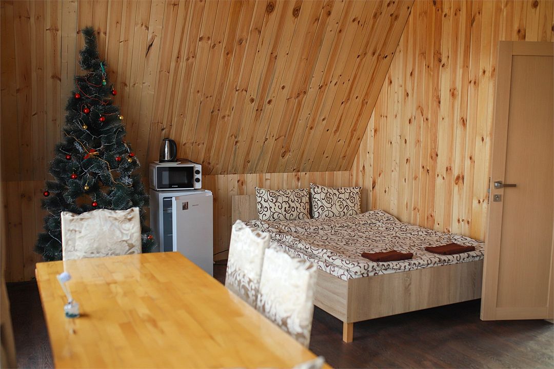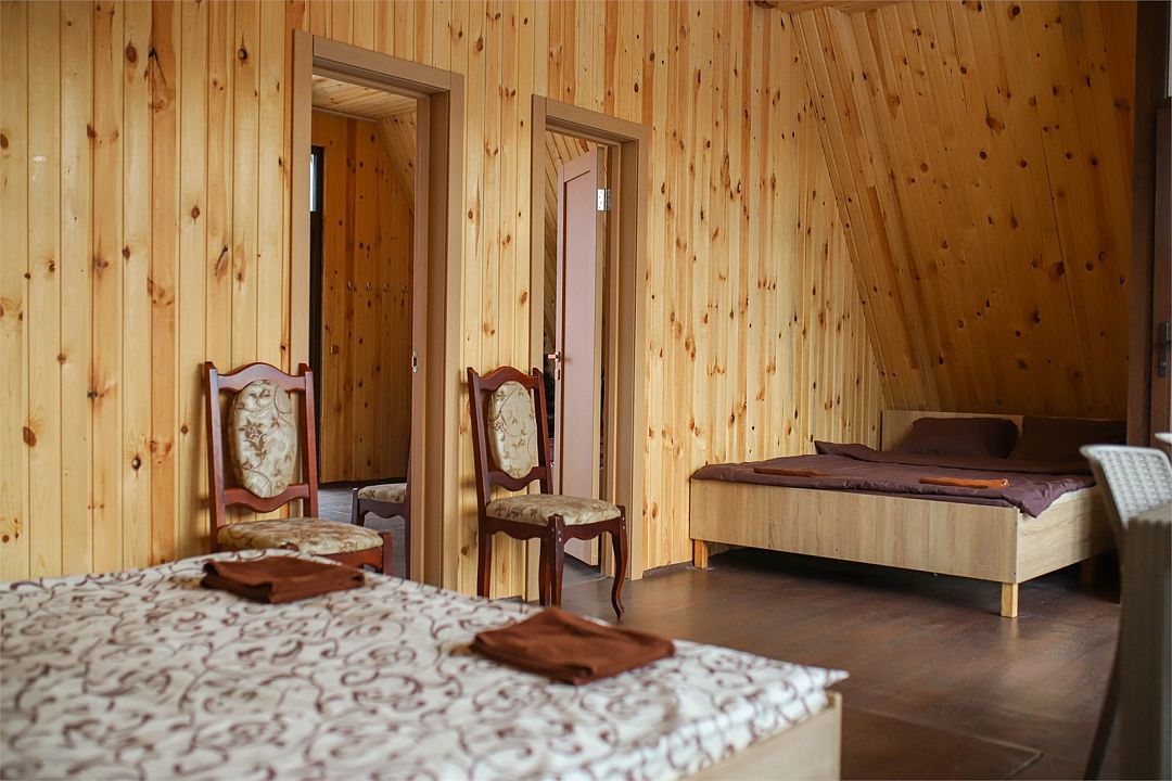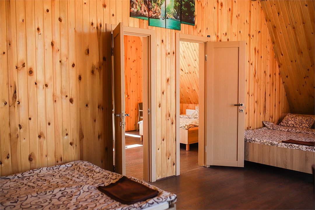 НедостаткиНеухоженная территория возле домиков, отсутствие душа-лейки, т.е. вода только сверху, помыться и не намочить голову - невозможно. Отсутствие в домике вешалки для одежды. Есть только стулья куда можно положить вещи. Шкафа никакого тоже нет. Чайник грели на полу возле кровати, т.к. розетка есть только там. Очень много уличных собак, утро у нас началось часов в 5 утра, т.к. очень громко лаяли собаки, а так хотелось тишины, которая должна быть в лесу и горах.
