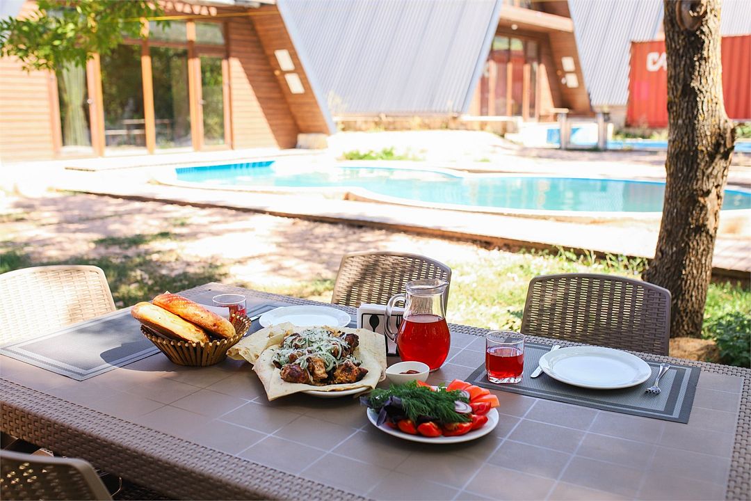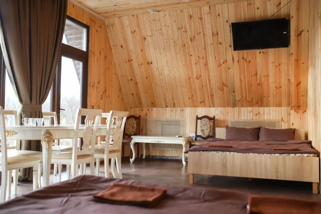 Wi-Fi, кондиционер, микроволновая печь, санузел, терраса, две двуспальные кровати, стулья, обеденный стол, зеркало, чайник, унитаз, отопление, душ, туалетные средства, мангал, панорамные окна, мини-холодильник, вид на горы, телевизор со Smart TV, вид на бассейн, экологичный подход, набор для приготовления чая и кофе, мыло, можно с питомцамиВ гостиничном номере