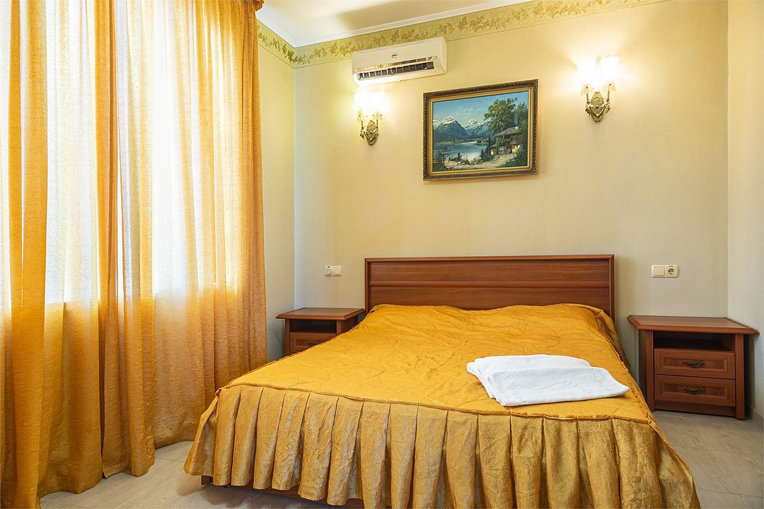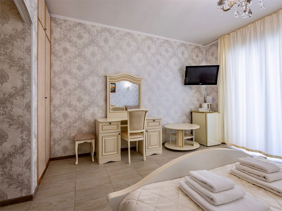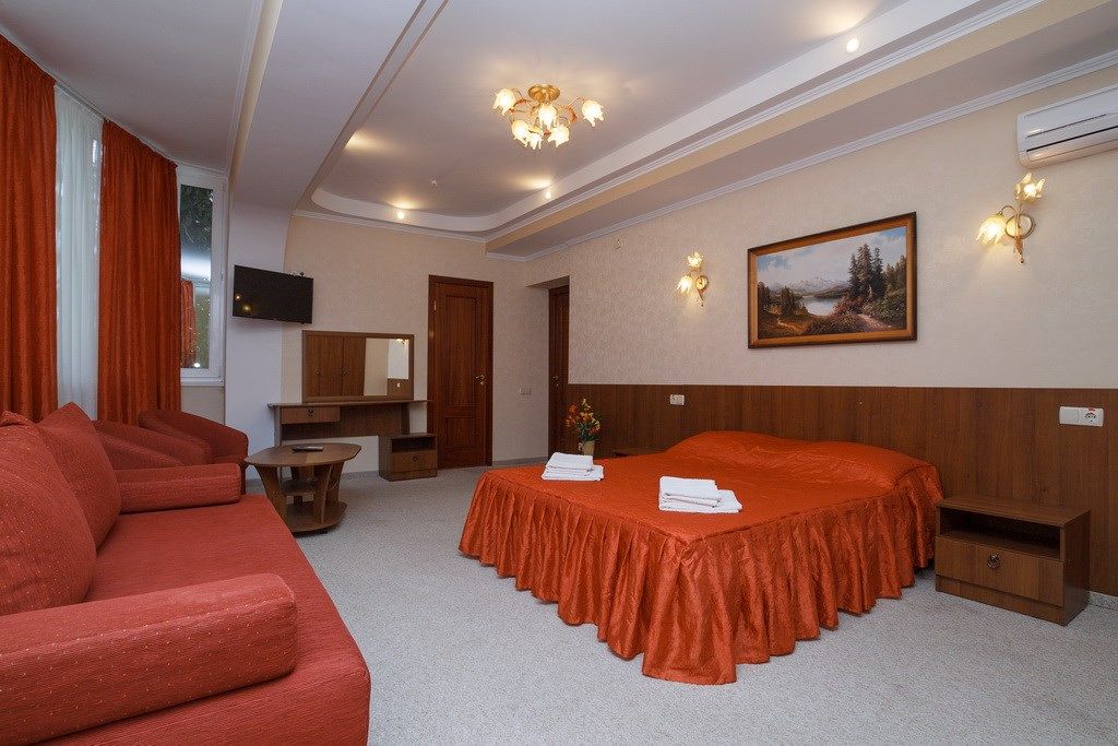 В каждом номере: удобная мягкая мебель, кондиционер, холодильник, спутниковое телевидение, сейф, санузел с душем, туалетом, круглосуточной подачей холодной и горячей воды. Открытая терраса 16 кв. м.