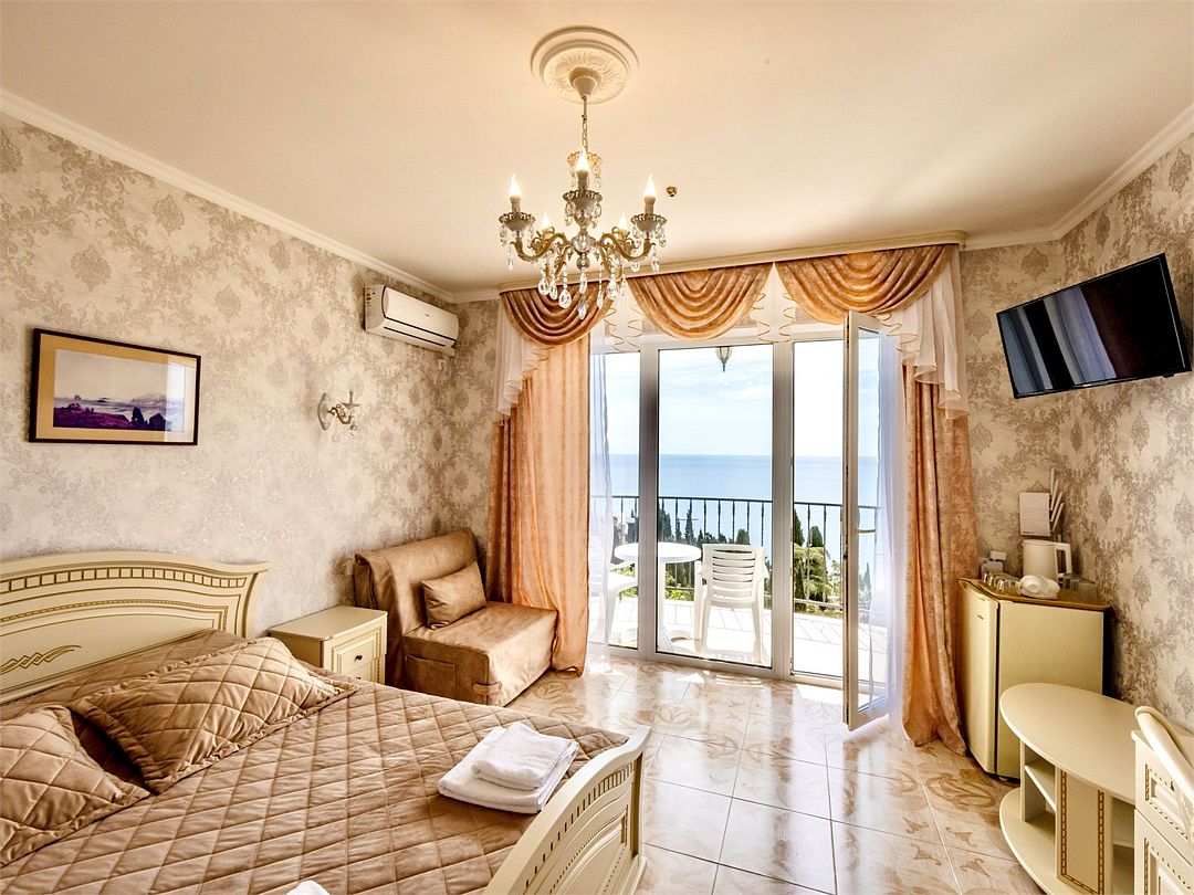 Wi-Fi, кондиционер, фен, ванная комната, душевая кабина, банные принадлежности, банные полотенца, балкон, балкон с красивым видом, двуспальная кровать, тумбы, вешалки, письменный стол, зеркало, чайный набор, сейф, чайник, раковина, косметическое зеркало, плиточное покрытие, высокие потолки, стаканы, стул, туалетный столик, туалетные средства, туалет, сушилка для белья, цифровое тв, диван-кровать, раскладной диван, телевизор с плоским экраном, мини-холодильник, гостиничная парфюмерия, вид на горы, пуфик, балкон с боковым видом на море, можно с питомцамиВ гостиничном номере