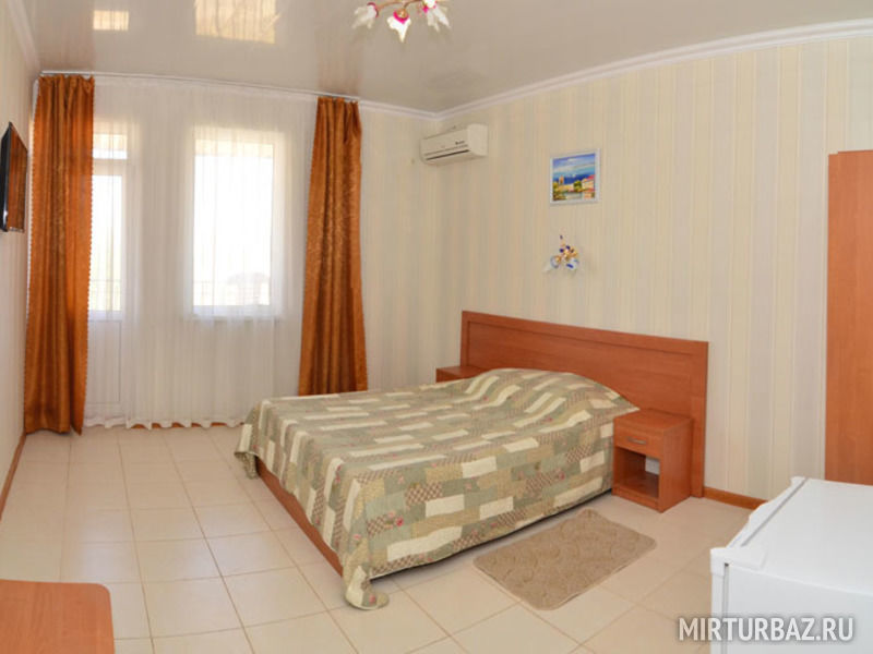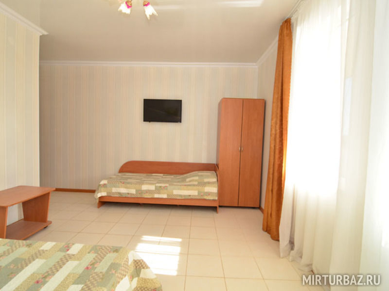 Семейный отдыхДостоинстваЕздили с ребенком. В стоимость входил завтрак, вполне съедобный. В номере нормальная мебель, техника в рабочем состоянии, кондиционер, балкон. Можно пользоваться общей кухней: все предусмотрено. Пляж близко, пешком не дольше 10 минут. Дно в море песчаное. Рядом с пляжем есть кафе. По городу от гостевого дома ходит маршрутка, если что-то нужно.