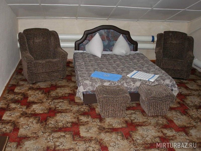 Три жилых корпуса, 14 номеров (4-однокомнатных,10-двухкомнатных). Все номера оснащены мягкой мебелью, телевидением,холодильником.