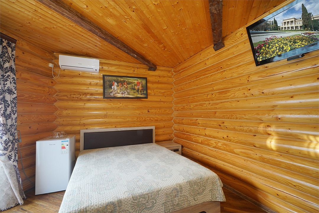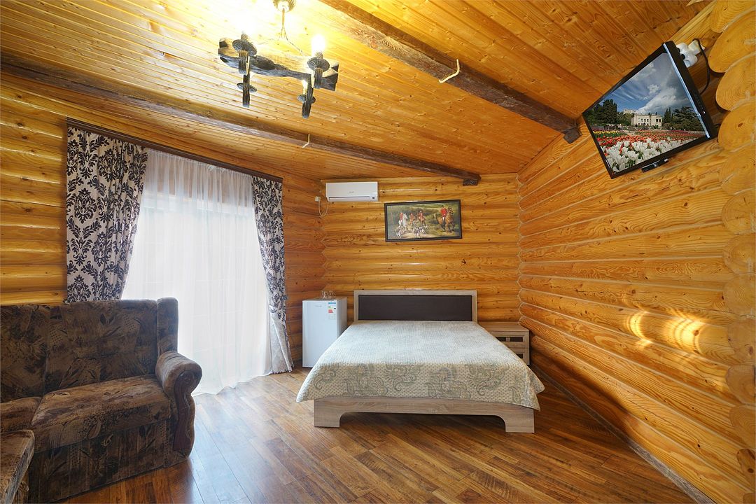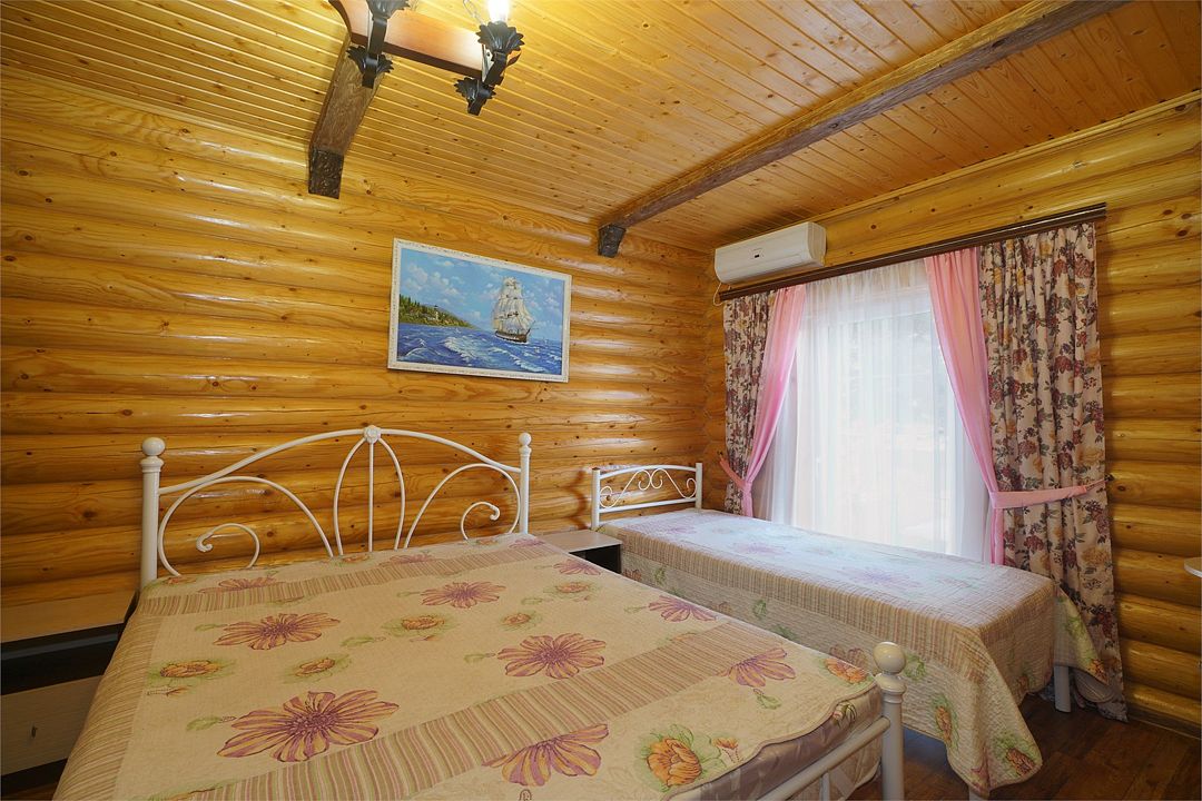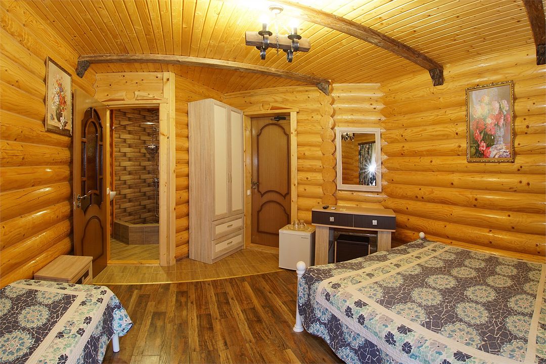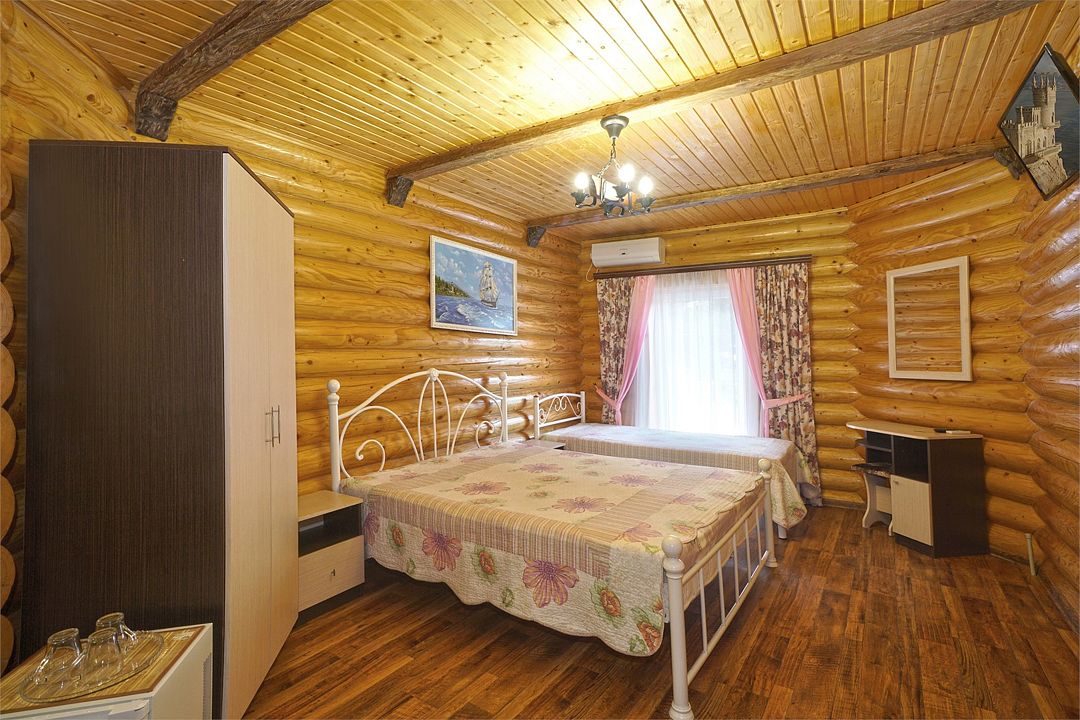 Номера полулюкс 3х-местные расположены в корпусе "сруб" на втором этаже. У номеров есть общая просторная терраса с сушилками для белья. В номере двуспальная кровать и односпальная.Услуги и удобства