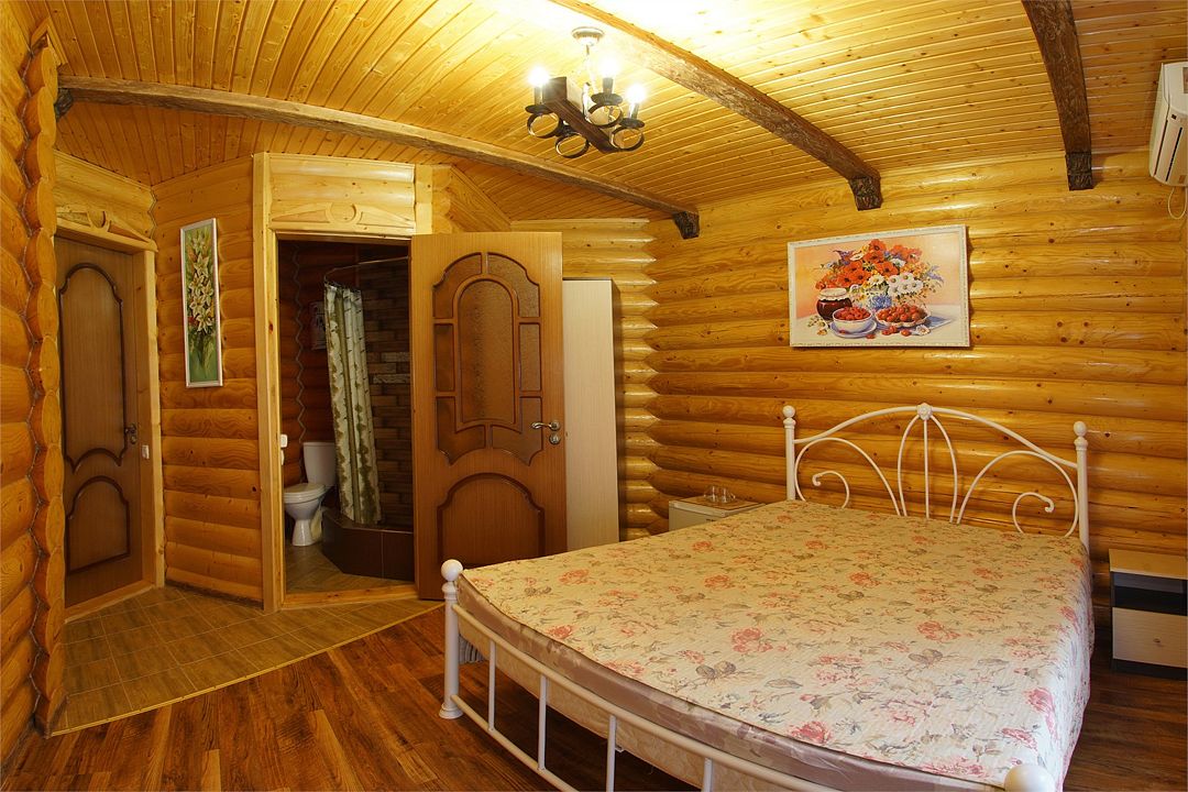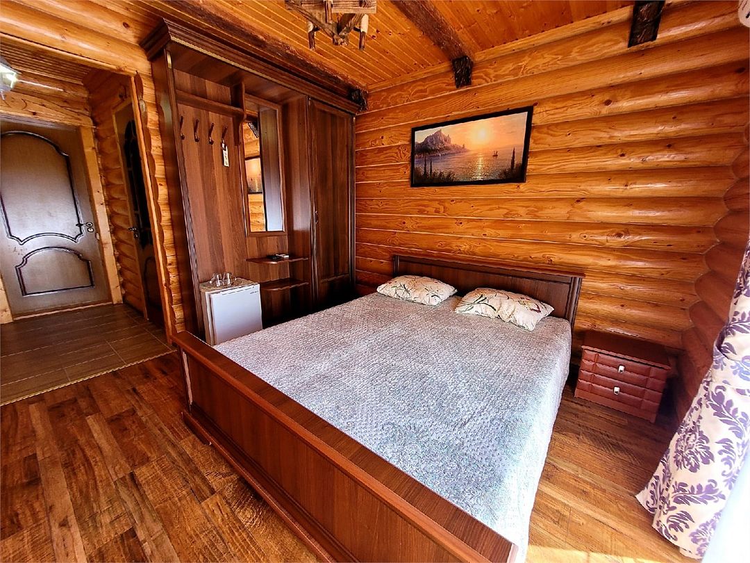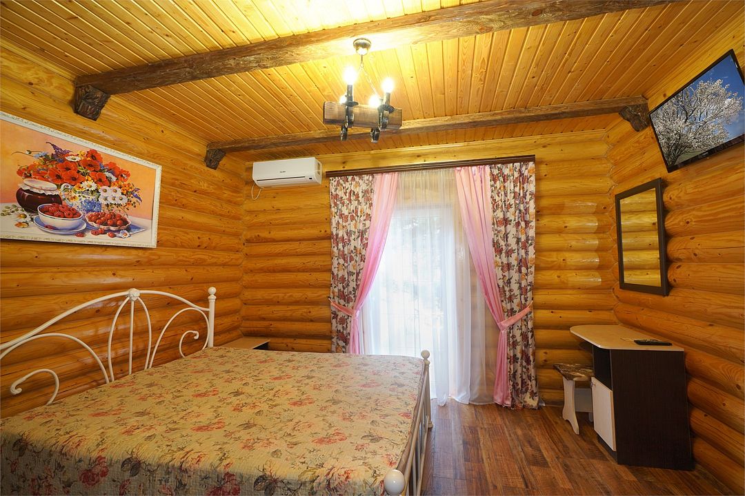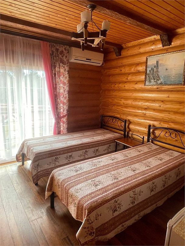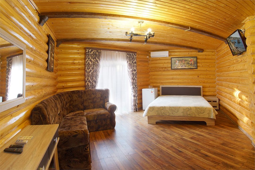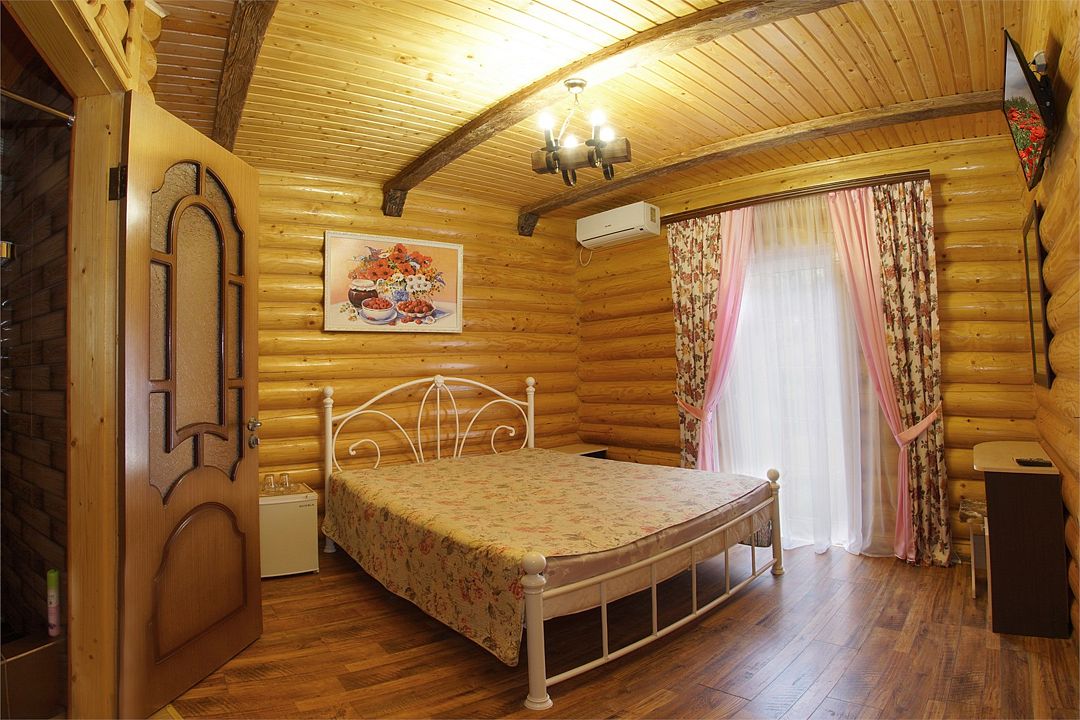 Номера полулюкс 3х-местные расположены в корпусе "сруб" на втором этаже. У номеров есть общая просторная терраса с сушилками для белья. В номере двуспальная кровать и односпальная.Услуги и удобства