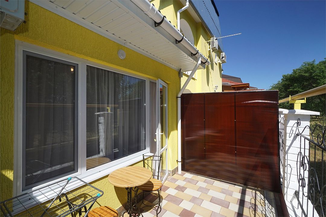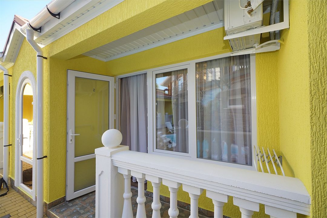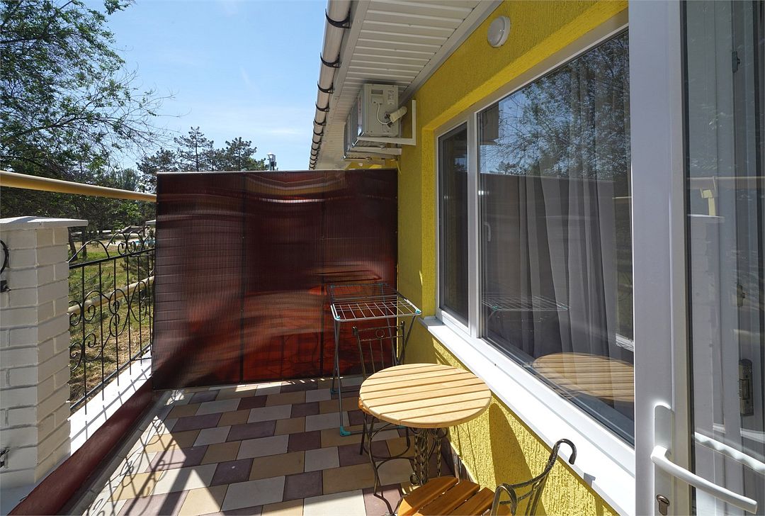 Номера категории стандарт, все 2х-местные, без доп.мест, с раздельными односпальными кроватями. В номерах есть терраса для отдыха, на террасе столы, кресла и сушки для белья. Все номера на первом этаже, с отдельным входом.Услуги и удобства