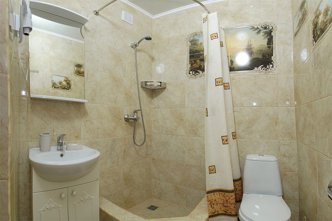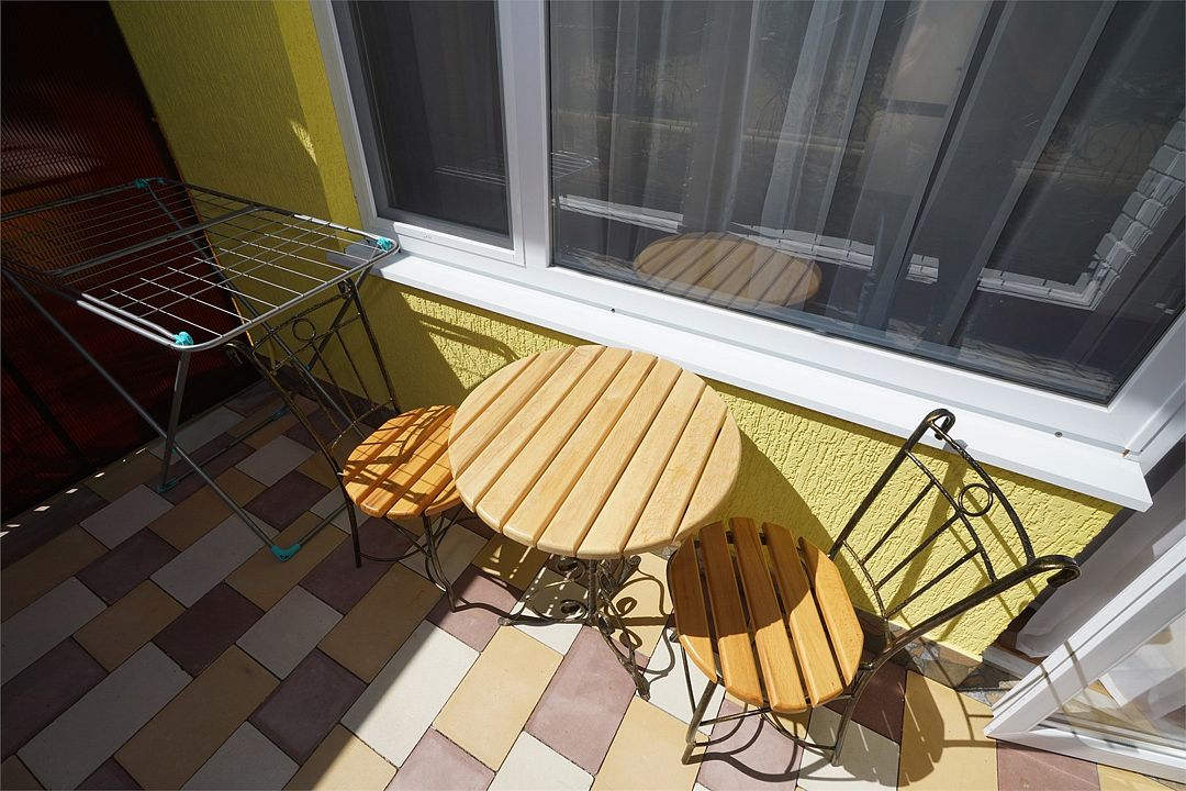 Просторный семейные номера из двух комнат, без межкомнатных дверей. Номера расположены на 3м этаже, без балкона, но есть общая терраса с сушилками для белья. В номерах двуспальная кровать и раскладное кресло-кровать.Услуги и удобства