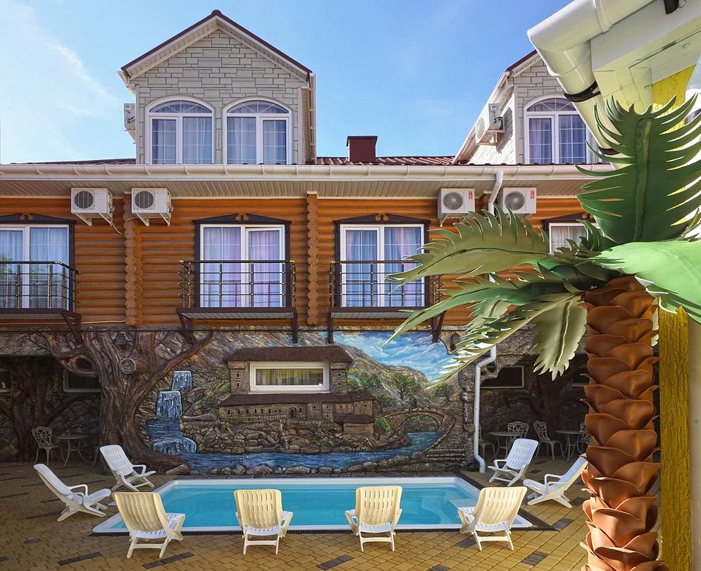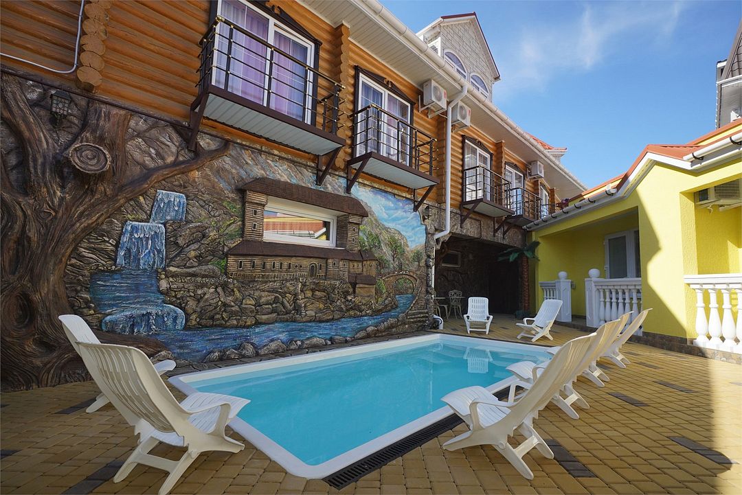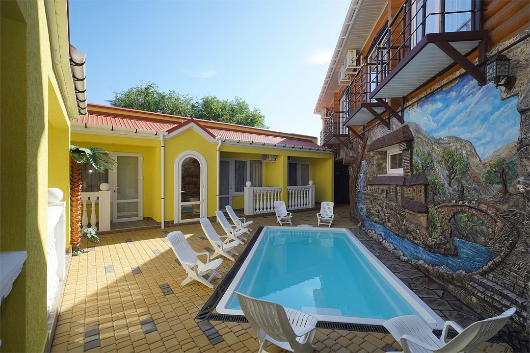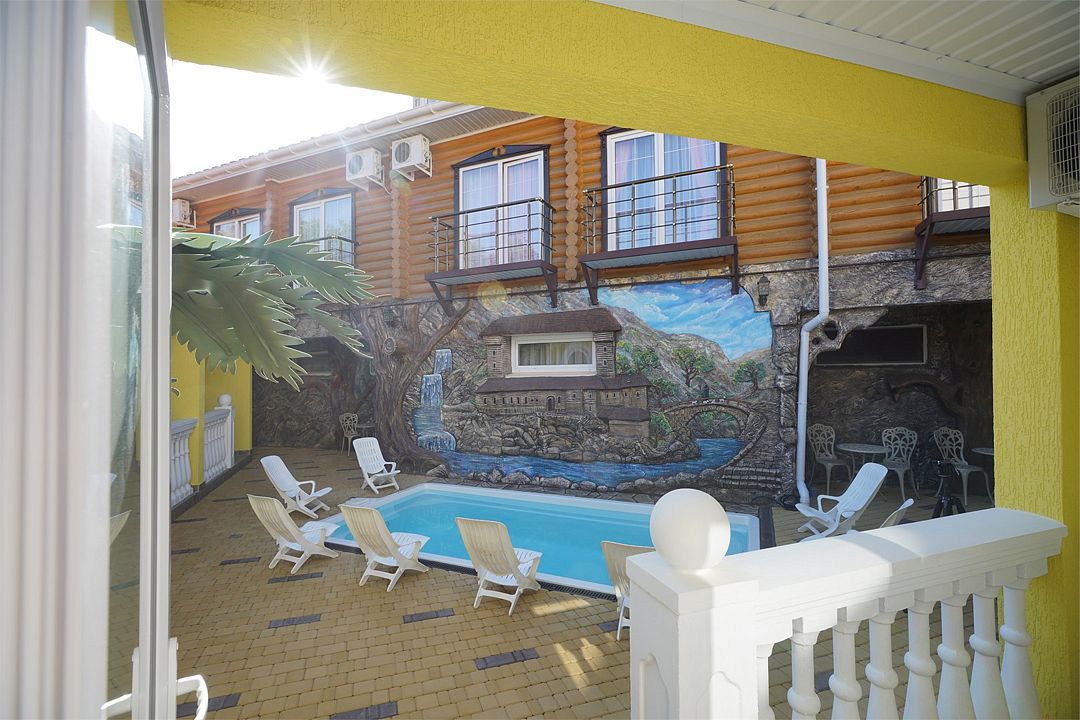 Все номера категории расположены на первом этаже и имеют отдельный вход со двора. В распоряжение гостей, проживающих в номерах вип-дворика, предоставлен небольшой бассейн с подогревом (вода прогревается до +30) и шезлонги. Номера 2х-местные с двуспальными кроватями.Услуги и удобства