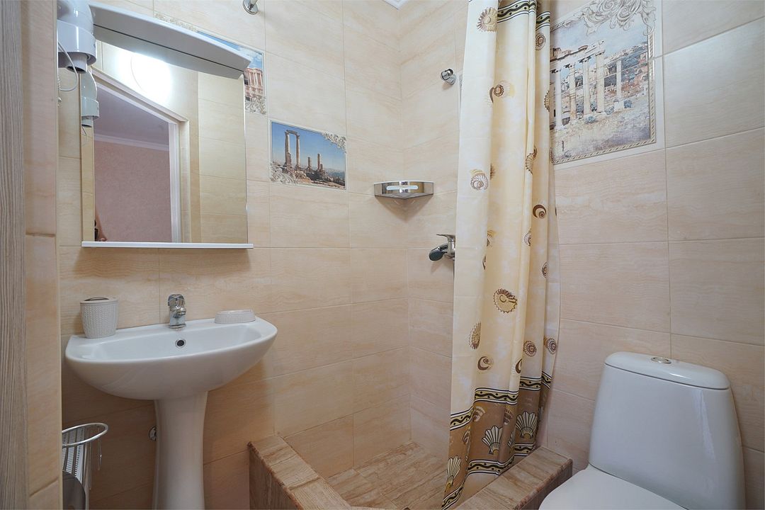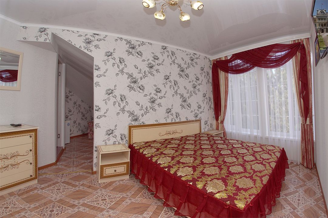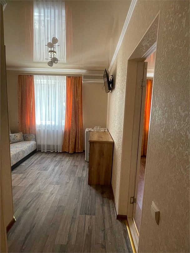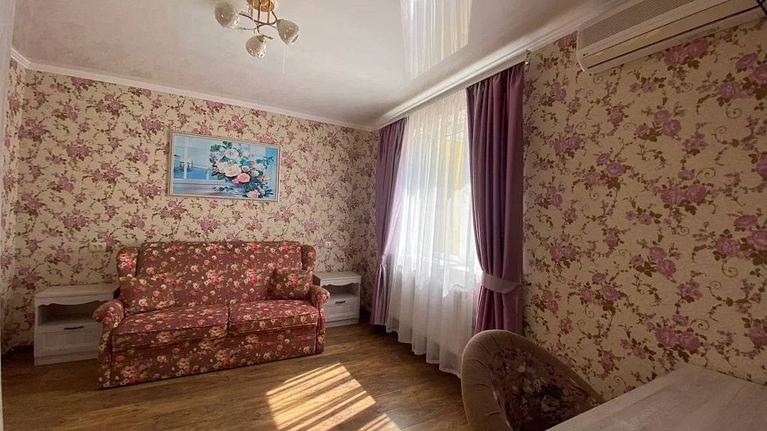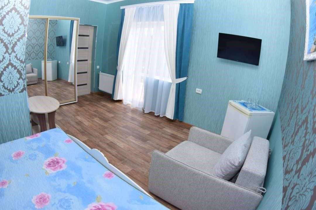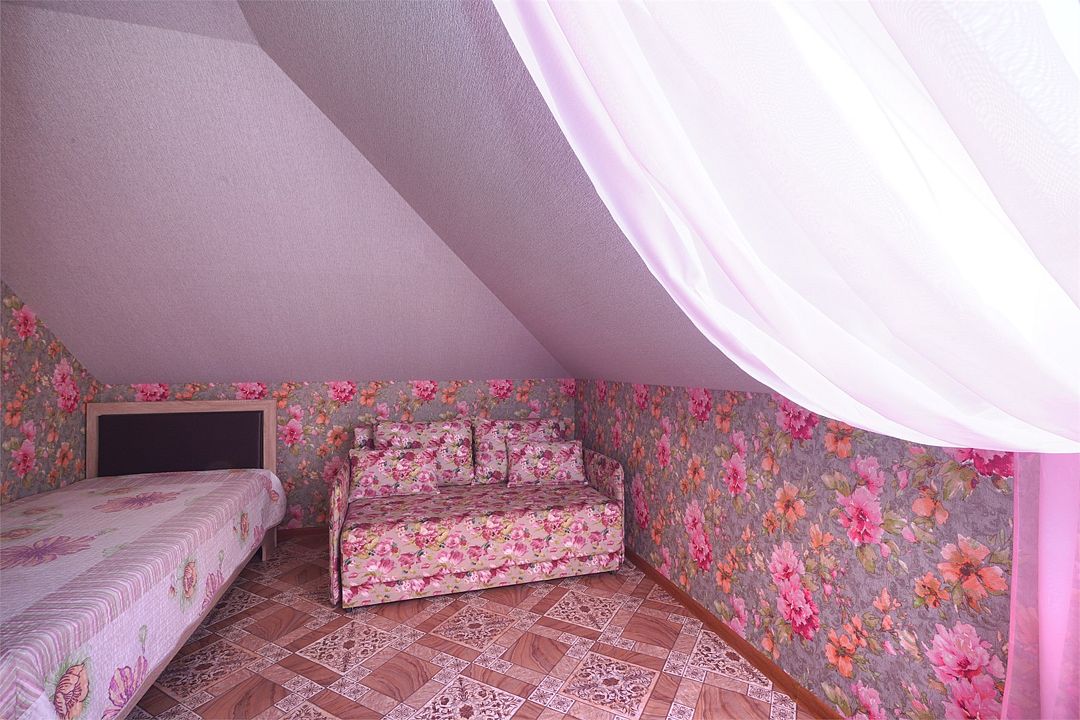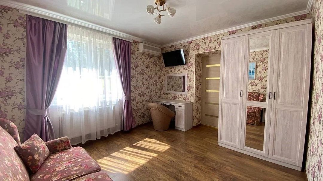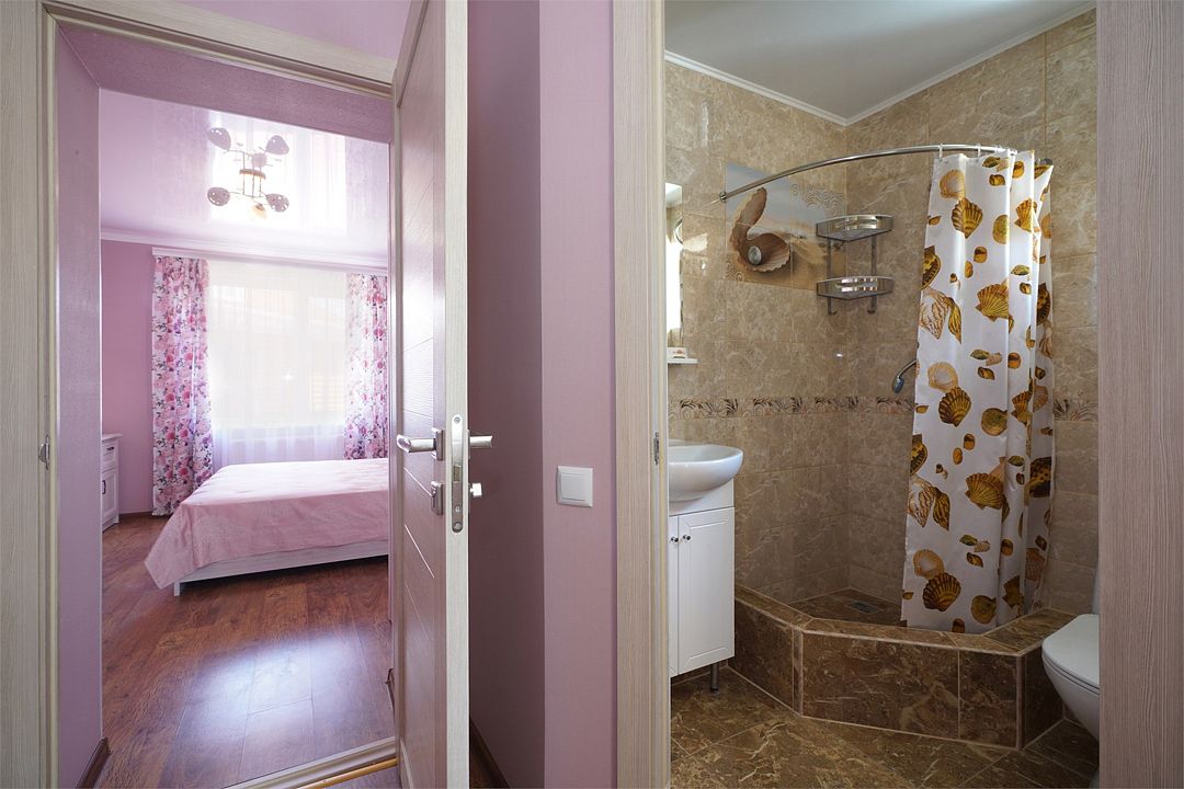 Просторный семейные номера из двух комнат, без межкомнатных дверей. Номера расположены на 3м этаже, без балкона, есть общая терраса с сушилками для белья. В номерах двуспальная кровать и раскладной диван-кровать 140 на 200 м.Услуги и удобства