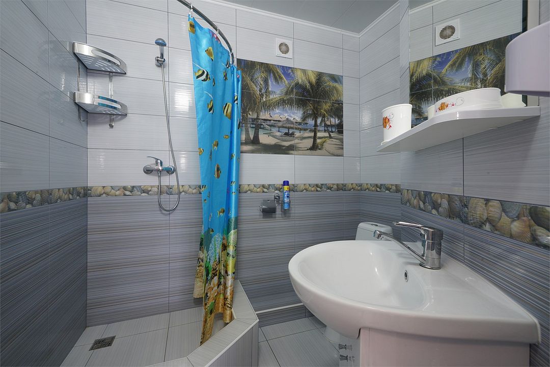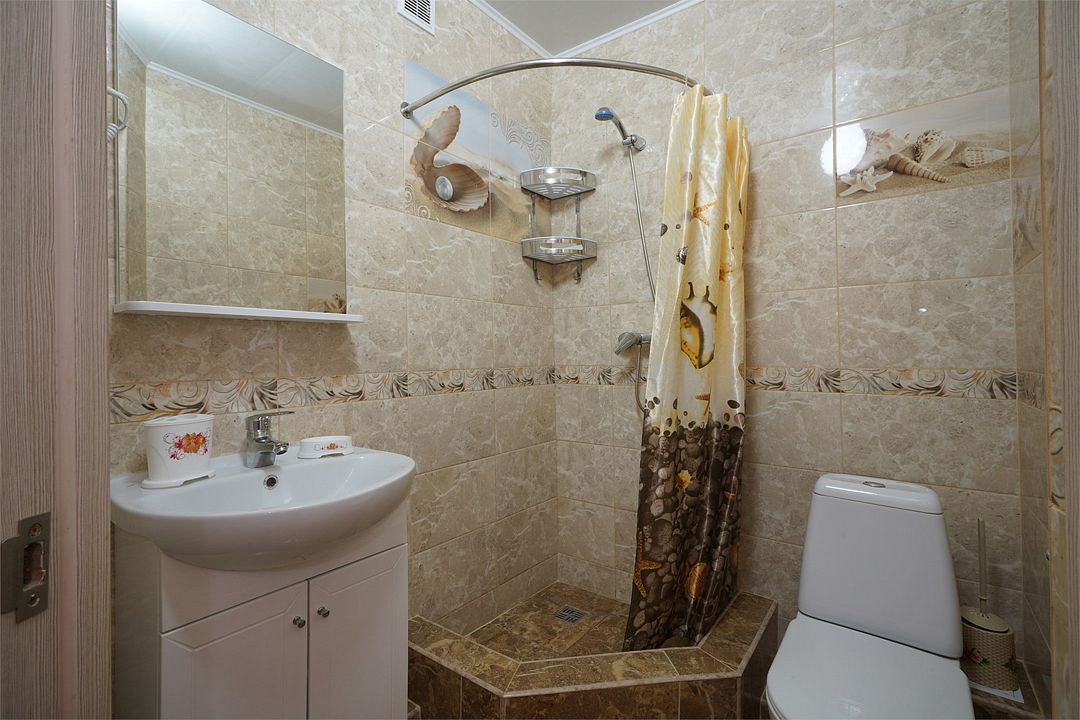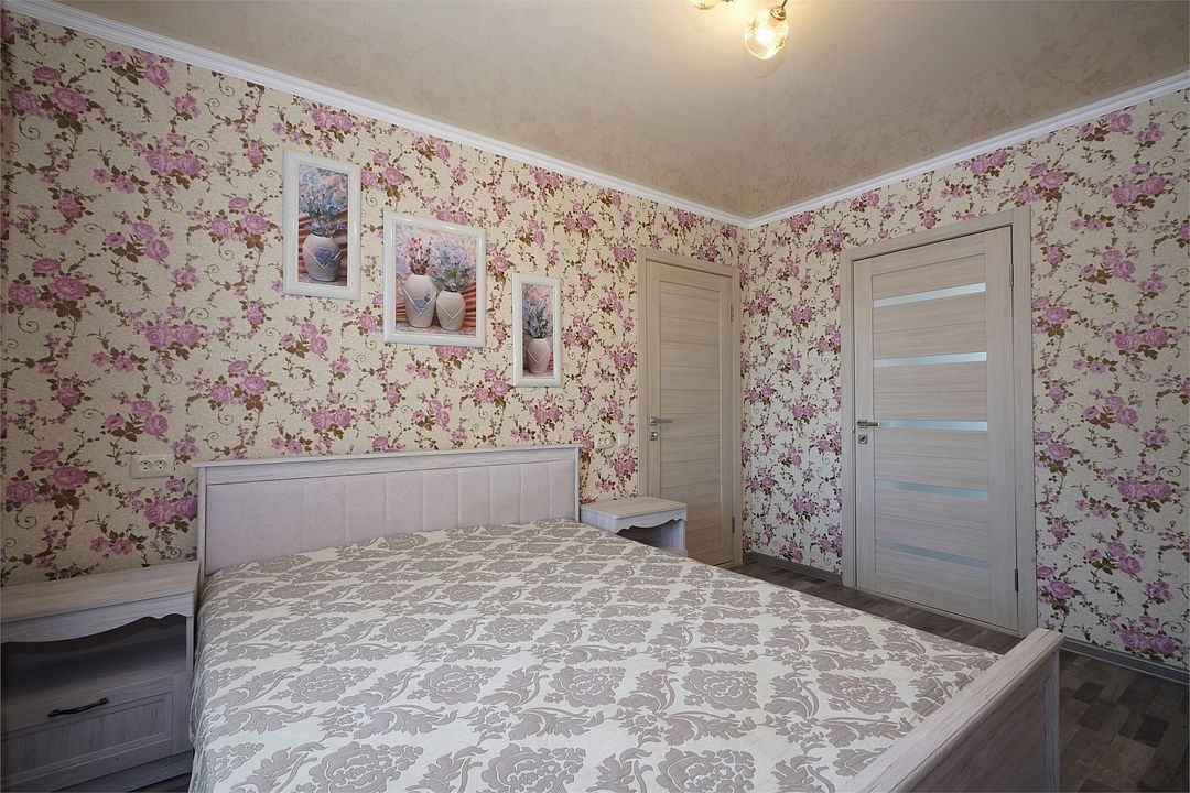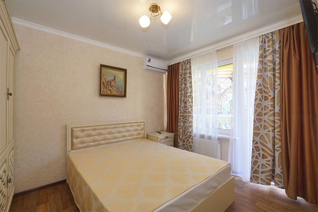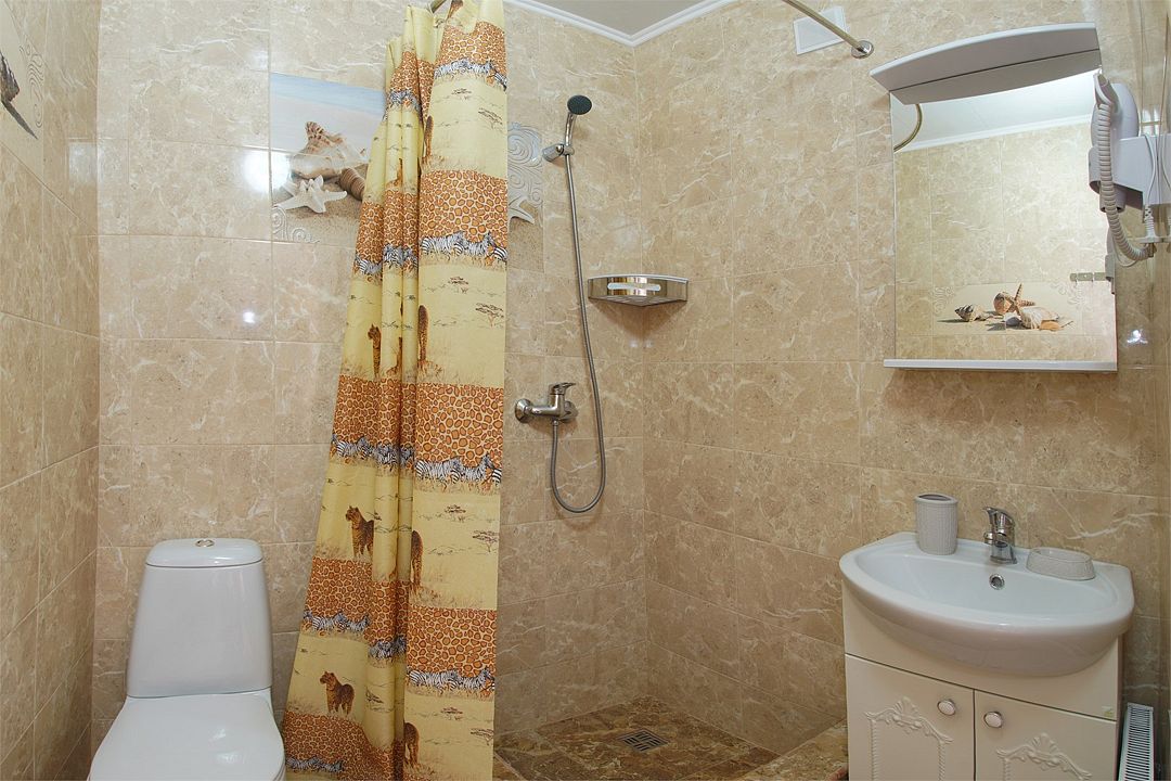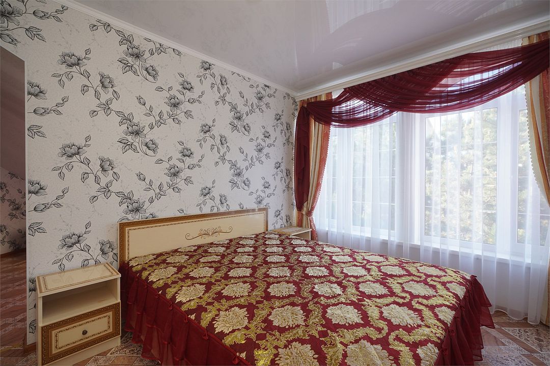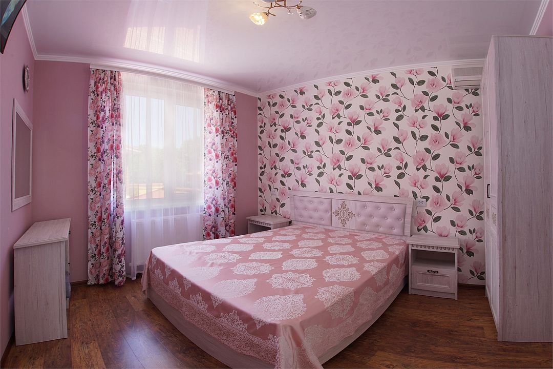 Просторный семейные номера из двух комнат, без межкомнатных дверей. Номера расположены на 3м этаже, без балкона, есть общая терраса с сушилками для белья. В номерах двуспальная кровать и раскладной диван-кровать 140 на 200 м.Услуги и удобства