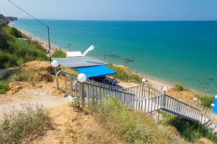 База отдыха «Романтик» находится в 200 м от пляжа. К пляжу ведет плавный спуск с лестницей.
