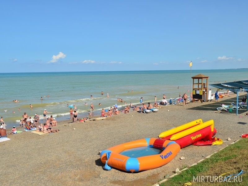 Находится пляж в 40 метрах от гостевого дома "Русь".