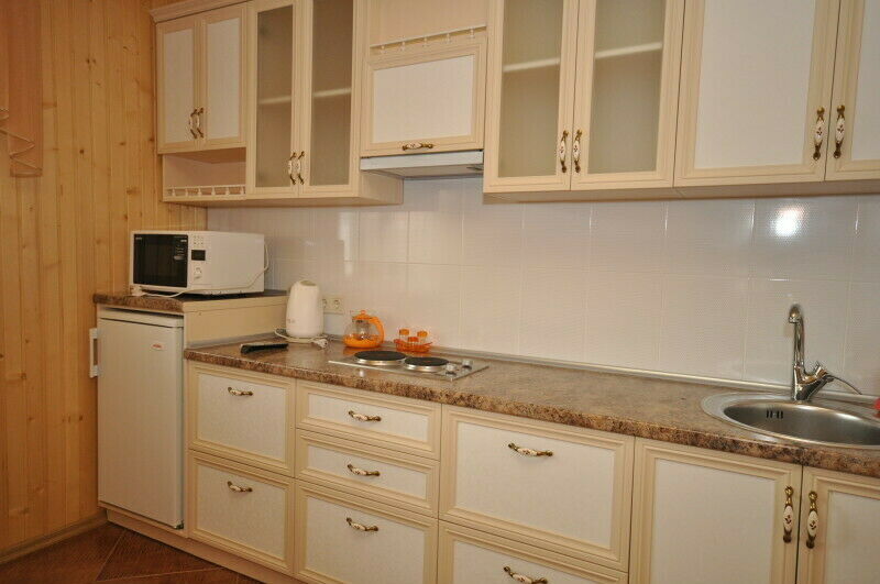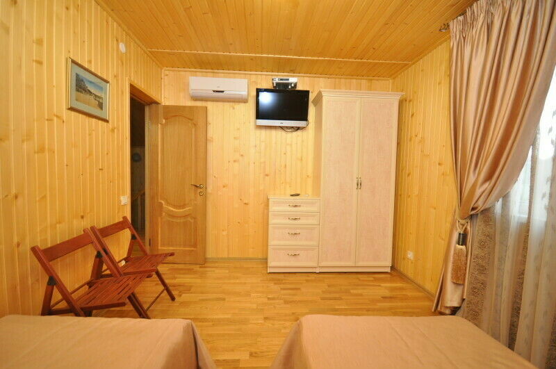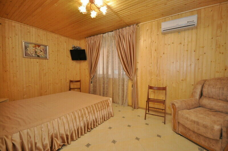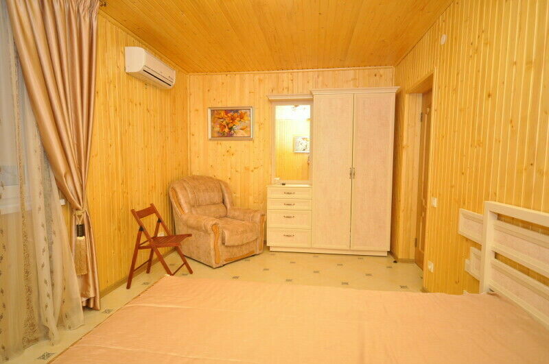 Коттедж включает: 4 спальни, 2 санузла, отдельную кухню. Все спальни оборудованы кондиционерами, спутниковым телевидением, отделаны деревом, оснащены удобной мебелью. На кухне есть холодильник, набор необходимой посуды, микроволновая печь, электроплита, электрочайник. У коттеджа есть уютная терраса с набором летней мебели. Подача горячей и холодной воды осуществляется круглосуточно. Частота уборки в номере - 1 раз в 3 дня. Смена постельного белья - 1 раз в 5 дней.