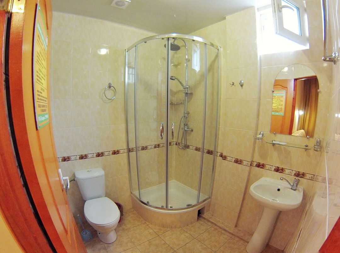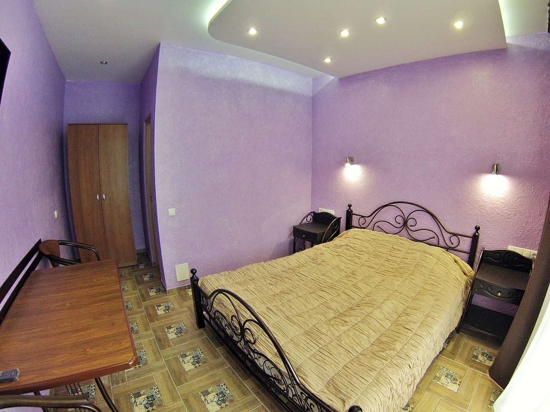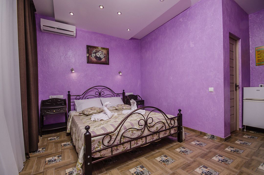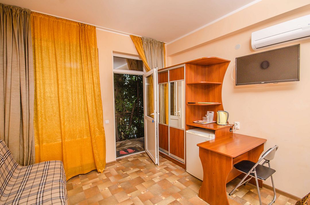 Трехэтажный корпус без лифта разместился в небольшом зеленом дворике. Способный единовременно принять до 30 человек, гостевой дом предлагает отдыхающим двухместные номера Стандарт и Улучшенный. Номера хорошо меблированы, есть балконы, необходимая бытовая техника и собственный санузел с ванной или душем.