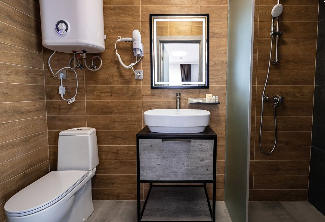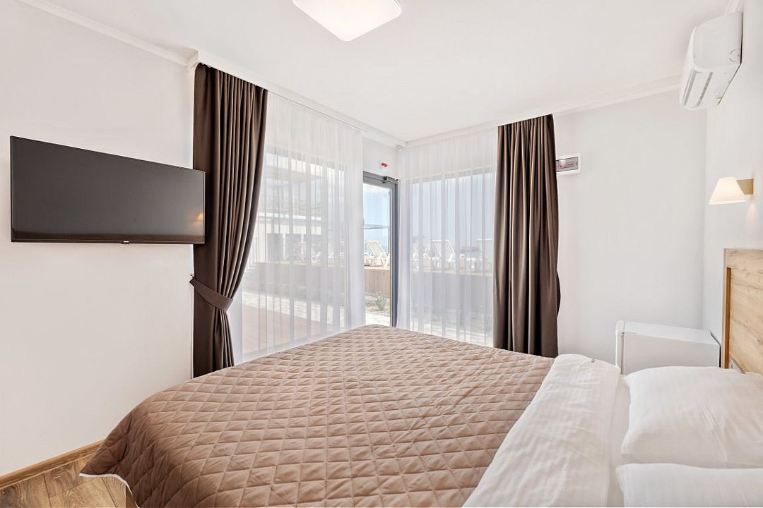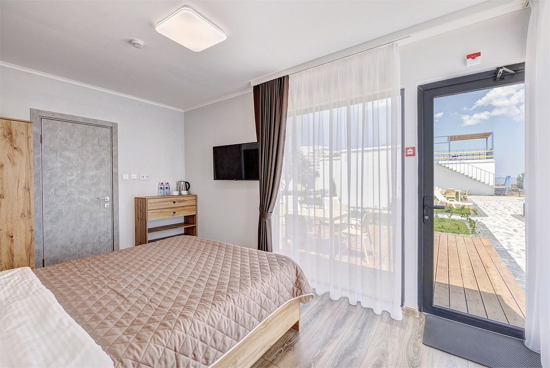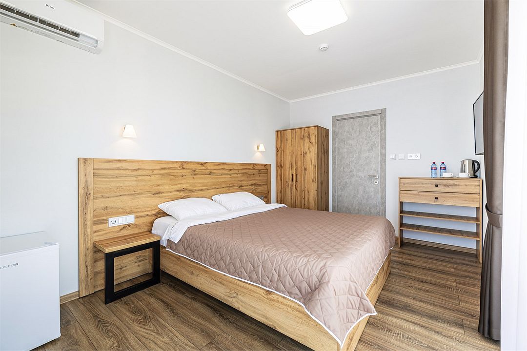 Wi-Fi, светильник, фен, ванная комната, водонагреватель, теплый пол, банные принадлежности, пляжные полотенца, косметические средства, терраса, двуспальная кровать, тумбы, шкаф для одежды, зеркало, звуконепроницаемые стены и окна, чайный набор, сейф, чайник, унитаз, раковина, отдельный вход в номер, душ, вид на море, вид на реку, ламинат, стаканы, туалетные средства, сплит-система, панорамные окна, цифровое тв, телевизор с плоским экраном, мини-холодильник, гостиничная парфюмерия, номер для некурящих, пуфик, уборка номера, набор для приготовления чая и кофе, услуги прачечной (платно), вешалки-плечики, бутилированная водаВ гостиничном номере