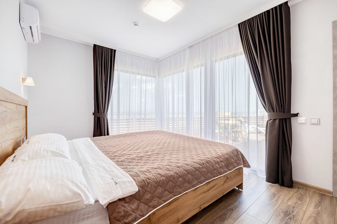 Просторный двухкомнатный люкс с собственной кухней. Так же для вас доступны две террасы с панорамным видом на море и сад.Услуги и удобства