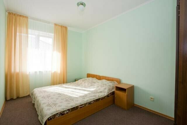 Просторный двухкомнатный номер «люкс» вмещает 4 человек. В номере есть спальня с двуспальной кроватью и шкафом, гостинная, большой санузел. В номерах есть выход на балкон.