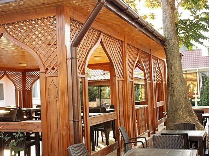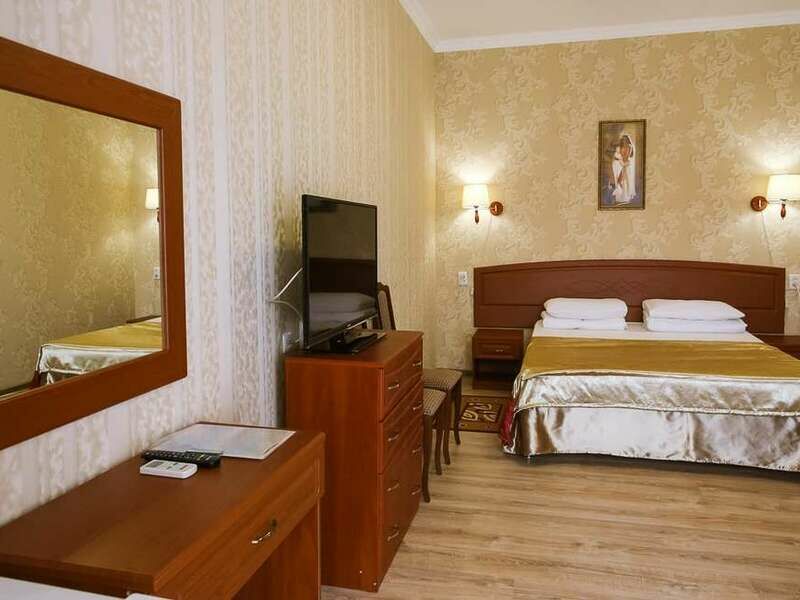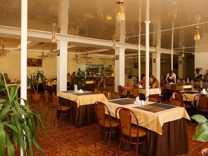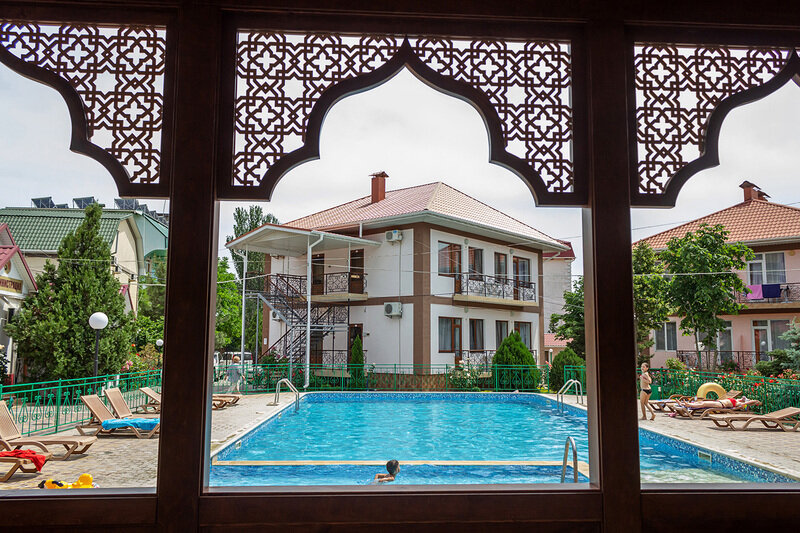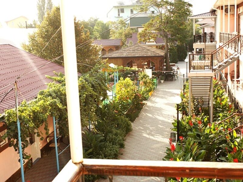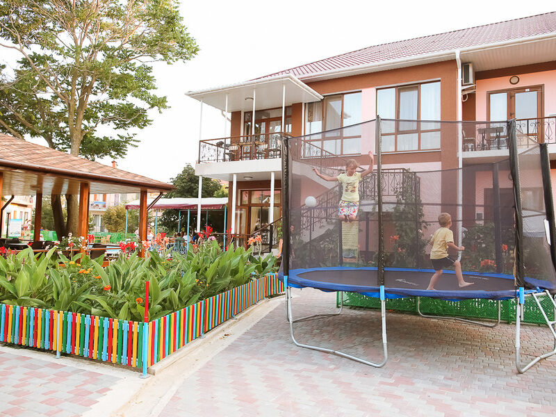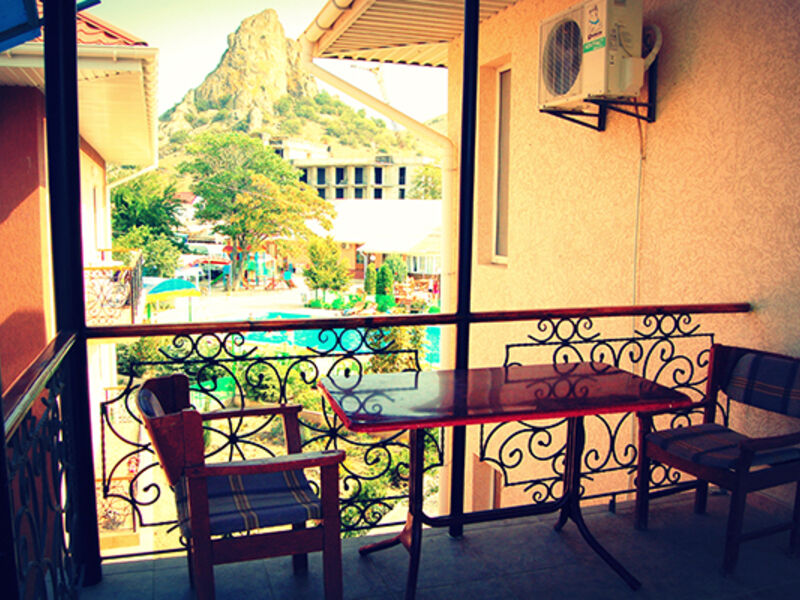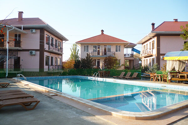 Путешествие с семьейОтлично!Все прекрасно в этом отеле. Отель предоставляет номера разного уровня: от хостела для студентов до шикарных люксов. Большая чистая, ухоженая огороженая территория, высокий забор, охрана, камеры по периметру, парковка для машин. Хороший бассейн. Можно арендовать мангал, кальян. Так же прачечная- постирают и погладят ваши веши за небольшую плату. Уболка номеров, смена белья и щамена полотенец- по желанию. Отзывчивый персонал. До моря придется идти пешком минут 5. в отеле есть магазин с продуктами и всем необходимым, в поселке у моря есть рынок, так же в поселке есть дельфинарий (на биостанции), там же красивый ботанический сад, очень рекомендую для посещения. Отель можно оплатить как с питанием, так и без. Есть платная столовая в отеле, ценник не большой например порция блинов 50 р, чай 30р, кофе свареный в кофемашине 40р. В номере есть холодильник и телевизов. Чайники только в люксах.