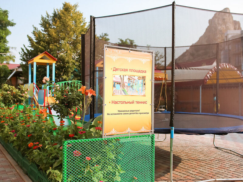 Путешествие с семьейХороший отельОтель мне понравился, красивая ухоженная территория, бассейн, детская площадка. На территории можно заказать кальян или шашлык, цены более чем бюджетные. Есть столовая и магазин со всем необходимым. На территории курят, что для меня немало важно. У каждого номера есть свой столик у входа и место чтобы просушить белье. В номерах чисто, уборка пар требованию. В целом отель хороший и от моря минут 7-10 медленным шагом.