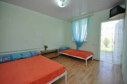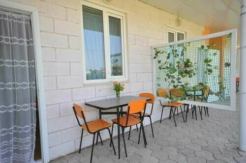Частное домовладение находится в курортном поселке Заозерное, который славится своими чистыми и пологими пляжами. Этот фактор можно назвать наиболее благоприятным для отдыха семей с детьми. Кроме того, основным преимуществом данного места отдыха является относительно невысокая плата за проживание в номере и транспортная доступность. Рядом с частным домовладением также находится множество санаториев, поэтому при желании гости могут пройти профилактику определенных заболеваний или оздоровиться. Номерной фонд представлен 3 и 4-х местными комнатами, где в последних установлены двухъярусные кровати. В каждом номере есть кондиционер, холодильник и телевизор. Для приготовления еды на территории частного домовладения есть общая кухня с современной бытовой техникой и посудой. Для развлечений детей предусмотрено наличие детской площадки и небольшого бассейна.