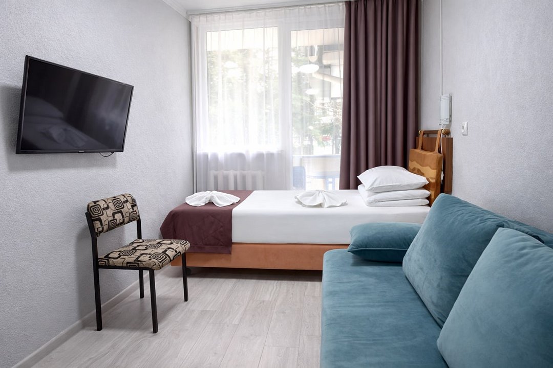 Данная категория номера укомплектована всем необходимым для комфортного проживания двух или троих человек, все номера оснащены креслом-кроватью. В каждом номере есть балкон, который подойдет для прекрасного начала дня. Отличный вид на горы или парк на территории комплекса подарят заряд хорошего настроения на весь день. *Документы необходимые для заезда https://slavutich.su/documentsУслуги и удобства