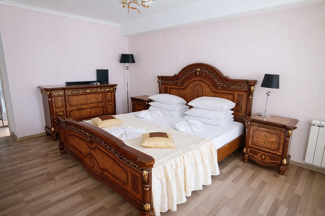 Номер с большой двухспальной кроватью. Прекрасно подходит как для поездки с целью отдыха для семейной пары, так и для проживания бизнес гостей. Вид на гору Демерджи и бассейн оставят в памяти наших гостей теплые воспоминания об отдыхе. *Документы необходимые для заезда https://slavutich.su/documentsУслуги и удобства